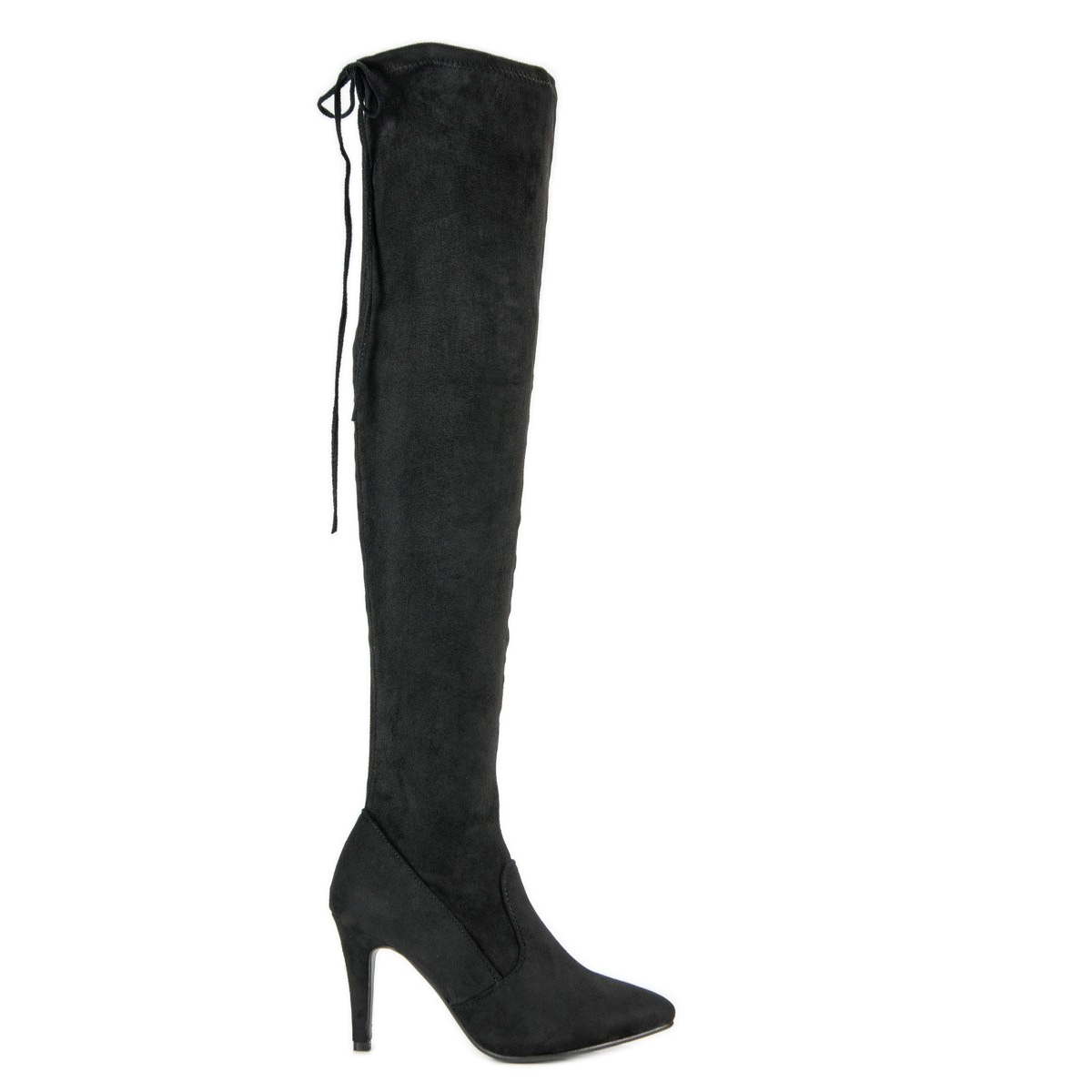 Cm Paris Cm Paris Lårstövlar i mocka på häl svart