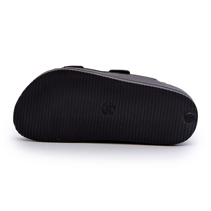 Justerbara remmar framtill låter dig perfekt matcha klaffarna till foten, och den extra remmen på baksidan säkerställer stabilitet, så att barn kan springa fritt och hoppa utan att oroa dig för att skjuta skodon. Den klassiska, tidlösa designen i svart gör att flip -flops matchar många stilar, både för stranden och spelar på gården.