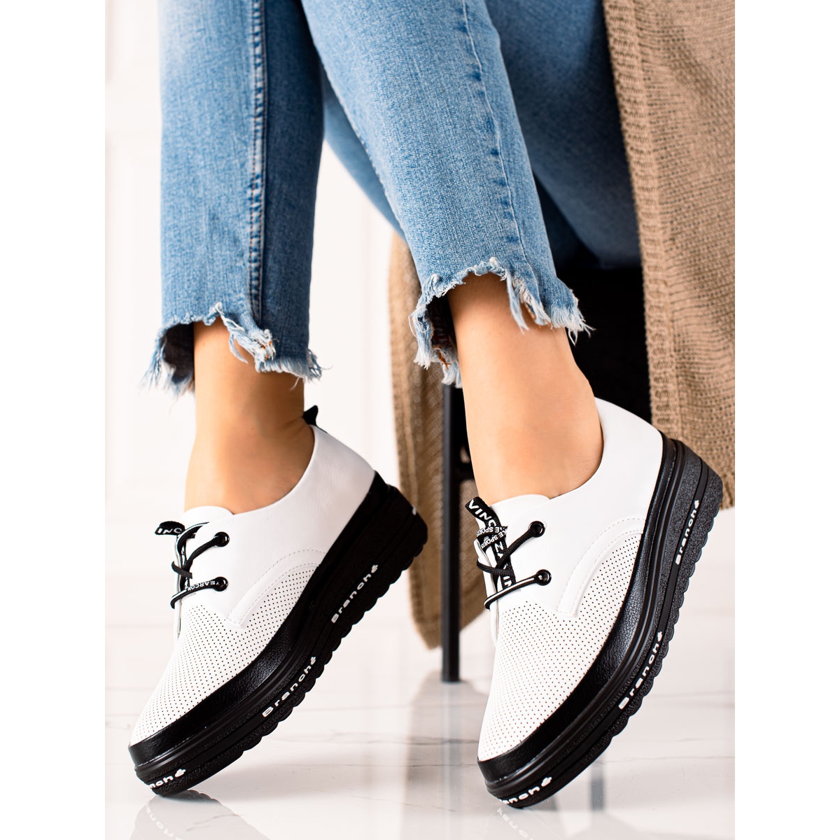 Välj lätta Vinceza-skor, som kommer att vara ett perfekt komplement till din garderob för vår, sommar, höst och vinter. Tack vare den universella vita färgen kan du enkelt matcha dem med både avslappnade och mer eleganta outfits. Unna dig lite lyx och komfort genom att välja en modell som säkert kommer att dra till sig uppmärksamhet!