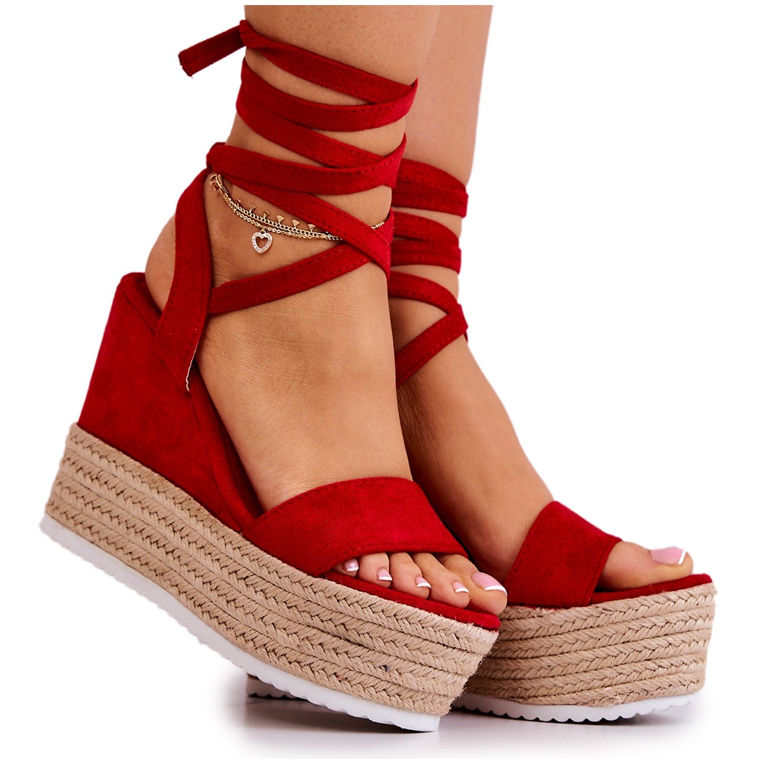 Detaljer: FW1 Lätta bundna sandaler på en röd Marriett-kil
