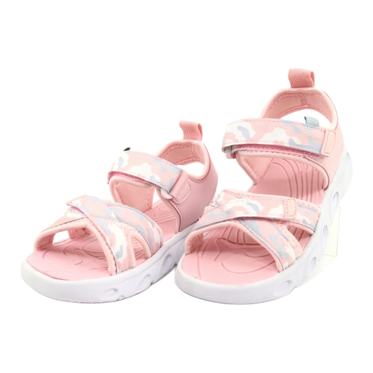 Snygga och bekväma amerikanska klubbsandaler skapade för flickor som värderar komfort och fashionabla utseende. Lätta, originalfärger (rosa med vita accenter) kommer perfekt att komplettera de dagliga och semesterstyliseringarna. Tillverkade av mjukt tyg ger de tröst under hela dagen av kul.