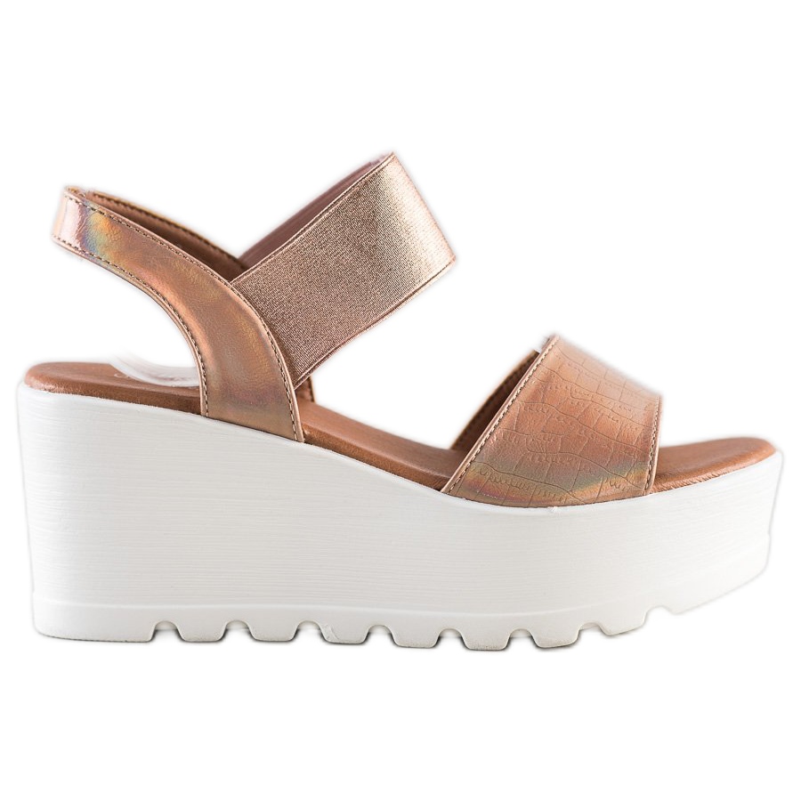 Weide Weide Lätta sandaler på en vit kil gyllene