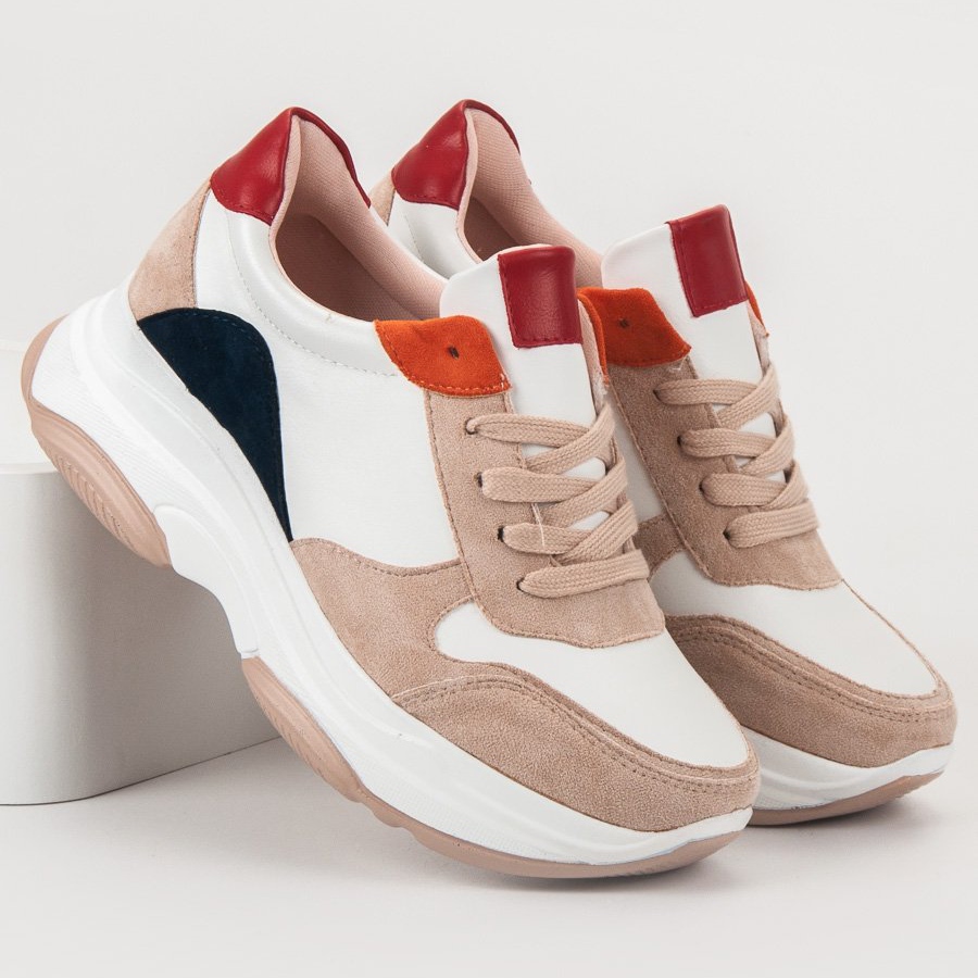 SDS Ljusbruna flerfärgade sneakers är ett idealiskt förslag för aktiva kvinnor som värdesätter både stil och bärkomfort. Tack vare den unika kombinationen av olika färger skiljer sig dessa sneakers från andra modeller och lägger till originalitet och karaktär till varje styling.
