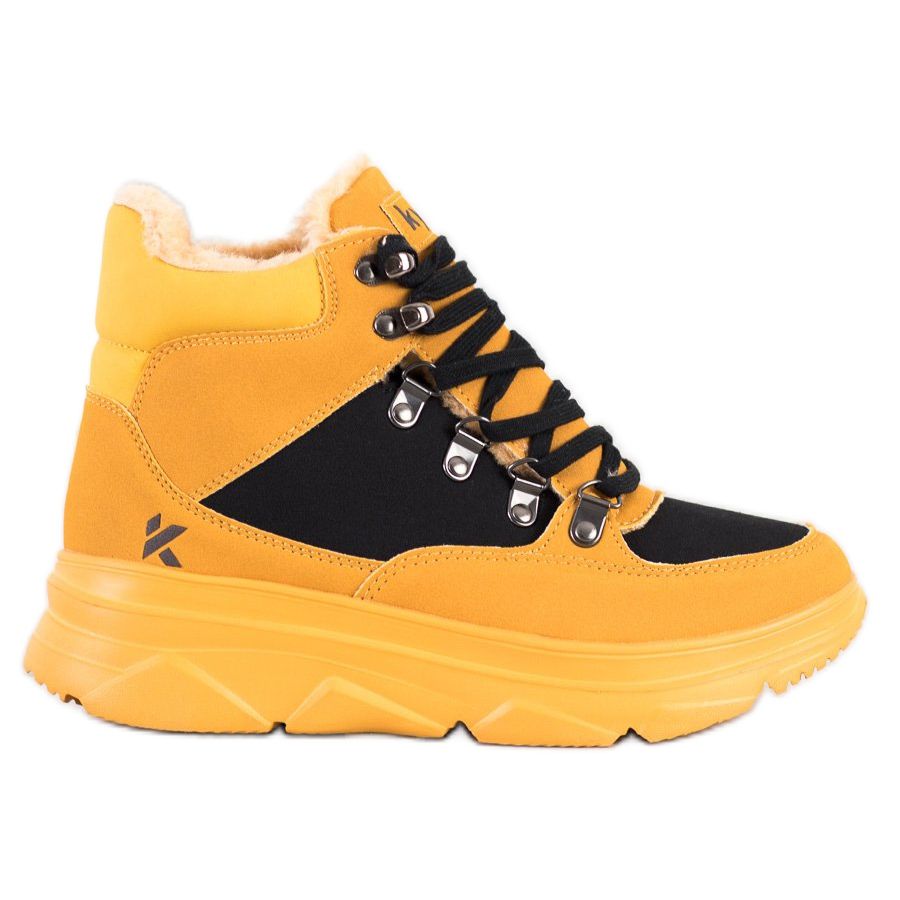 Här är de perfekta skorna för kallare dagar - lätta, sportiga platåkängor från Kylie. De kännetecknas av en fashionabel färgkombination av svart och gult, vilket väcker uppmärksamhet och passar perfekt in i de senaste trenderna.