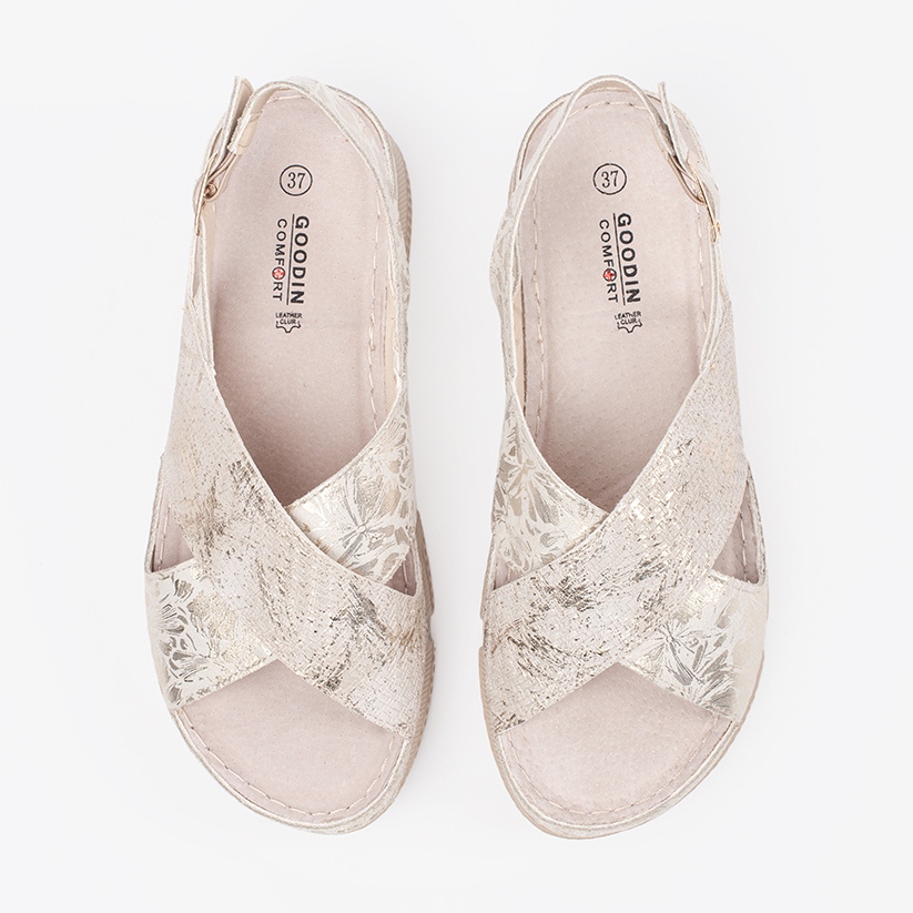 En slät plastsula garanterar inte bara stabilitet utan också flexibilitet vid varje steg. Goodin Sandals är ett exempel på att kombinera elegans och modeförfining, som säkert kommer att betona all stilisering - från luftiga klänningar till mer avslappnade kombinationer med kjolar eller byxor.