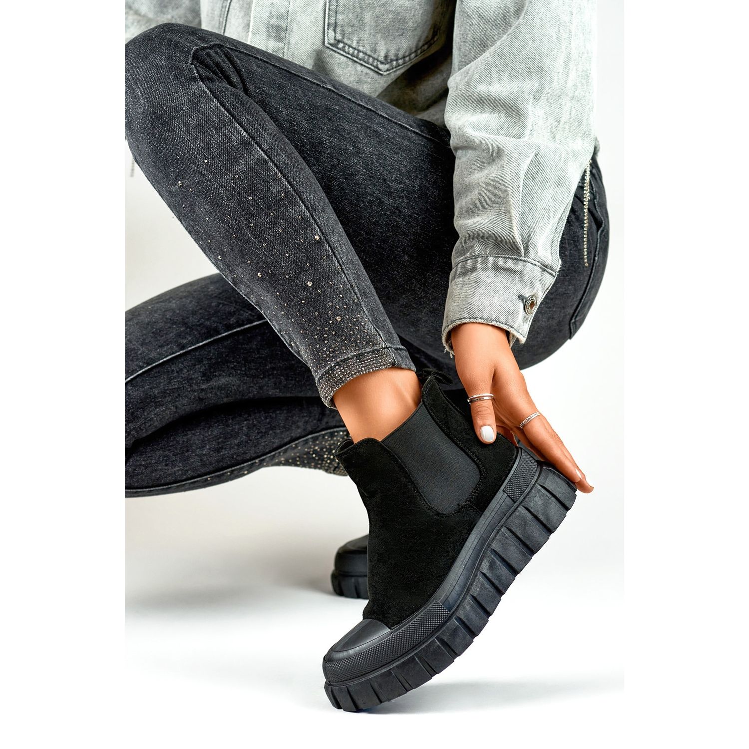 ** Kvinnors stövlar något isolerade A1006B - Svart elegant och bekväm **