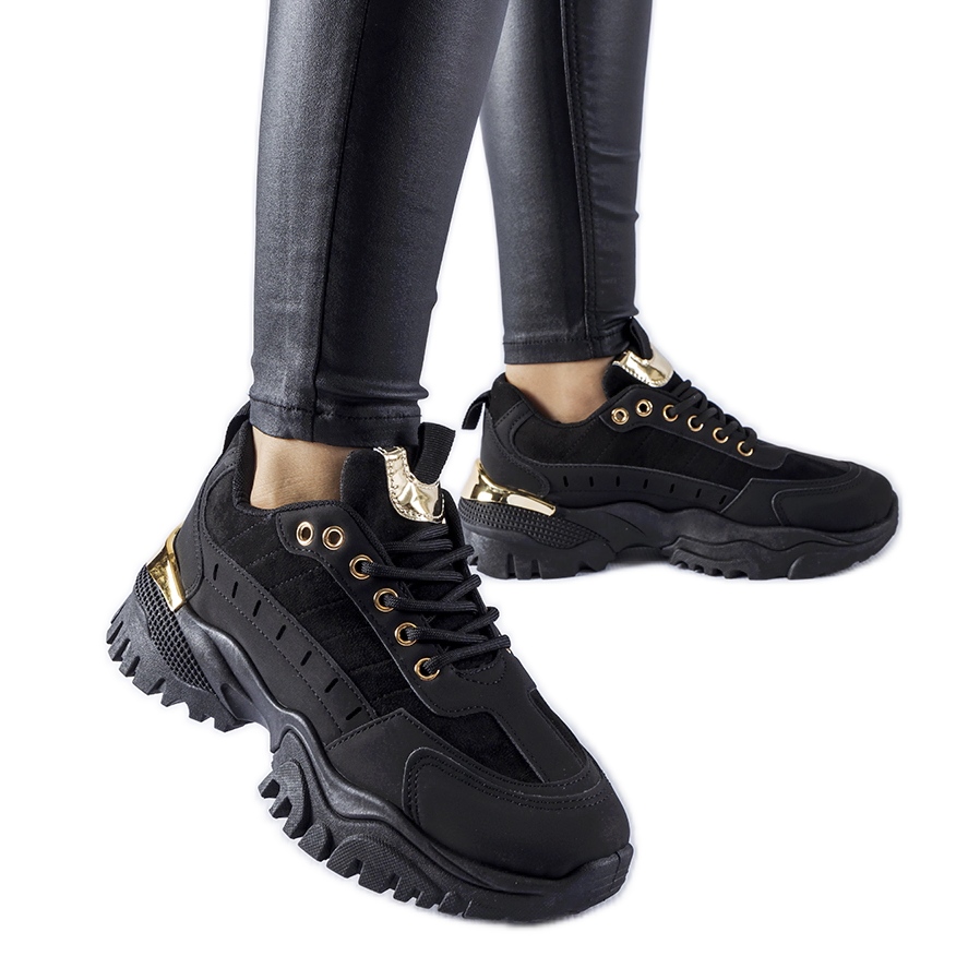 Dessa skor från sommar-vårkollektionen är praktiska och samtidigt väldigt eleganta. En extra accent i form av gulddetaljer gör att Laudes sneakers passar perfekt in i aktuella modetrender. Oavsett tillfälle kommer dessa svarta sportsneakers att vara det perfekta komplementet till vilken outfit som helst.