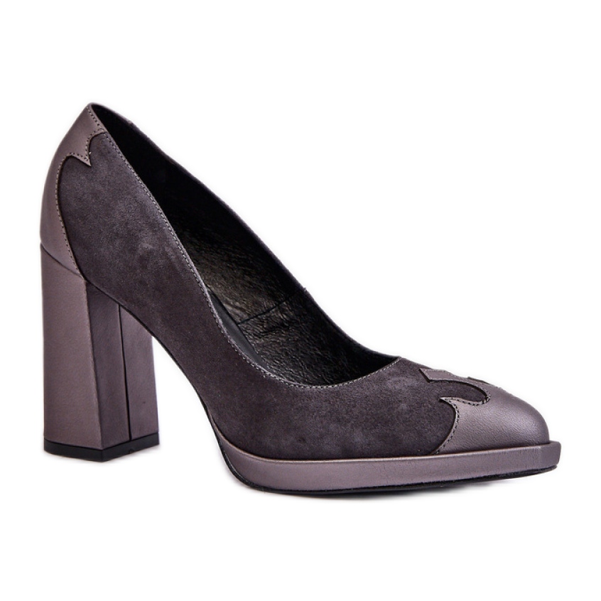 Vi presenterar pumpar på Laura Messi -stolpen i en elegant grå färg, som är den perfekta kombinationen av klassiker, komfort och modern design. Dessa smakfulla skor, gjorda av naturligt mocka läder, med uppmärksamhet på varje detalj, kommer att vara ett perfekt komplement till varje garderob.