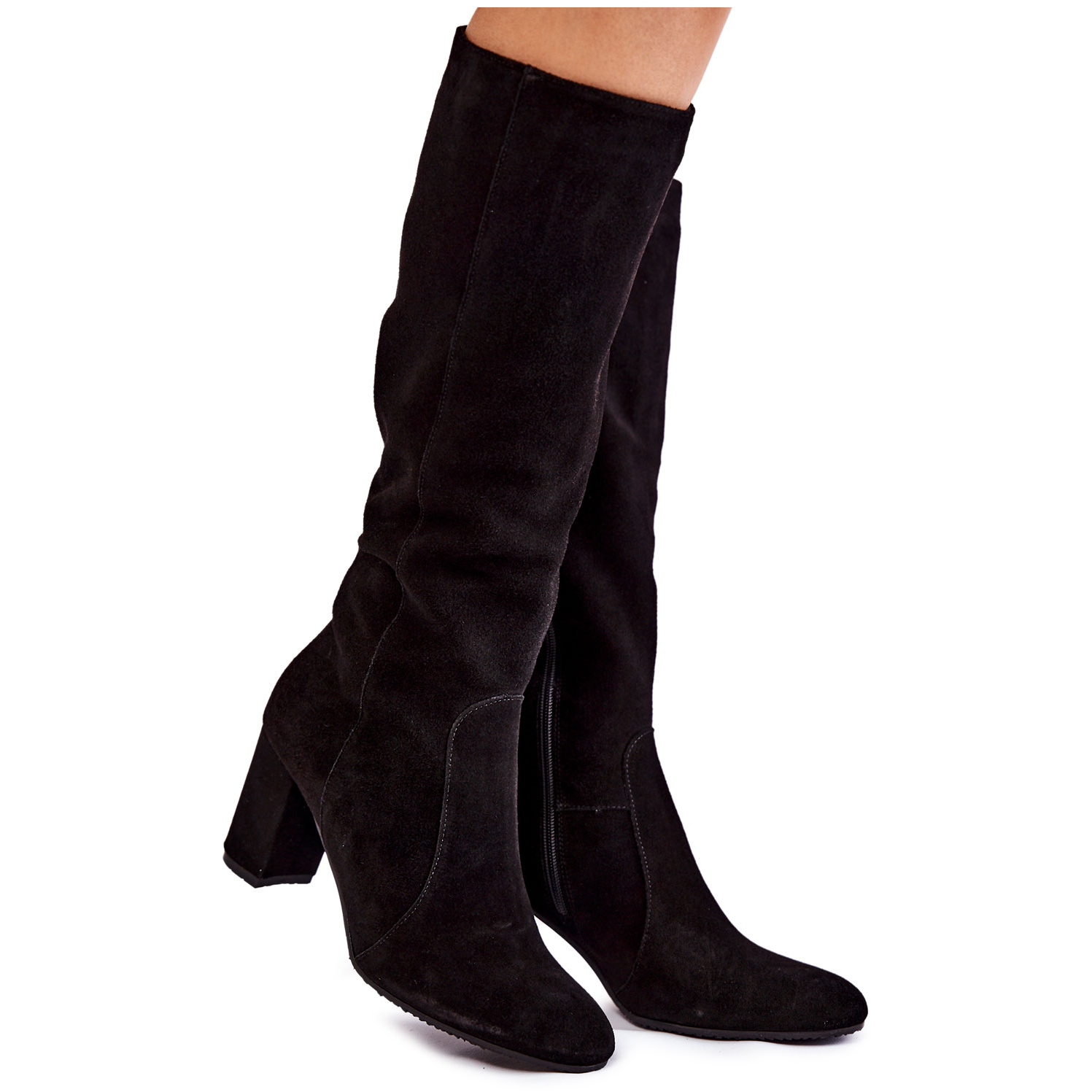 Ovandelen av kängorna når till knät, vilket gör dem inte bara snygga, utan också praktiska för kallare dagar. Tack vare den mjuka innersulan och en delikat 8 cm hög stolpe blir varje steg i dessa stövlar lätta och stabila. Dragkedjan som sitter på sidan av ovandelen gör det enkelt att ta av och på skorna, vilket är extremt bekvämt för vardagsbruk.