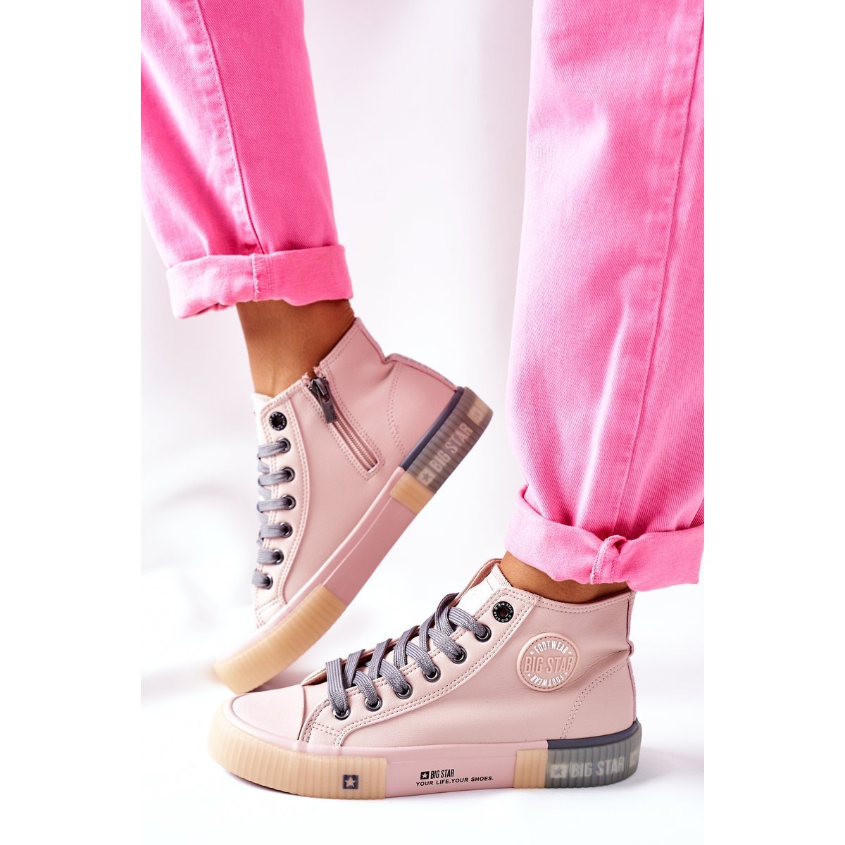 Detaljer: Leather High Sneakers Big Star II274138 Rosa