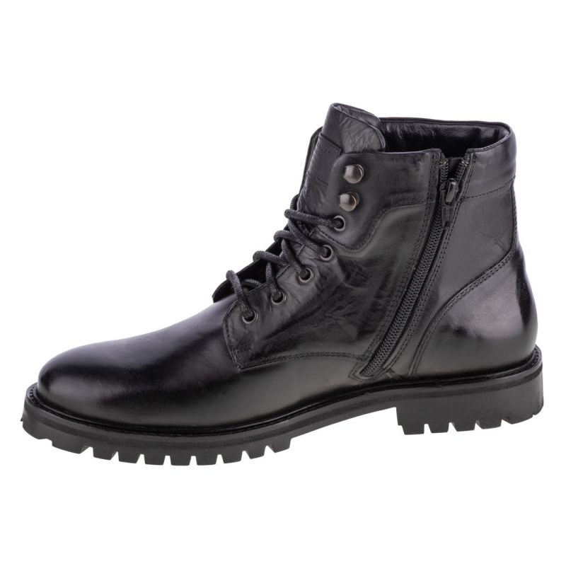 Dessa skor fästs med snören, vilket möjliggör enkel anpassning till individuella behov. Den runda nosen ger dem en klassisk karaktär och den tjocka slitbanan ger utmärkt grepp på olika underlag. Sulmaterialet är tillverkat av syntet vilket ökar nötningsbeständigheten och det inre tygfodret garanterar en behaglig känsla av värme, vilket är särskilt viktigt på vinterdagar.