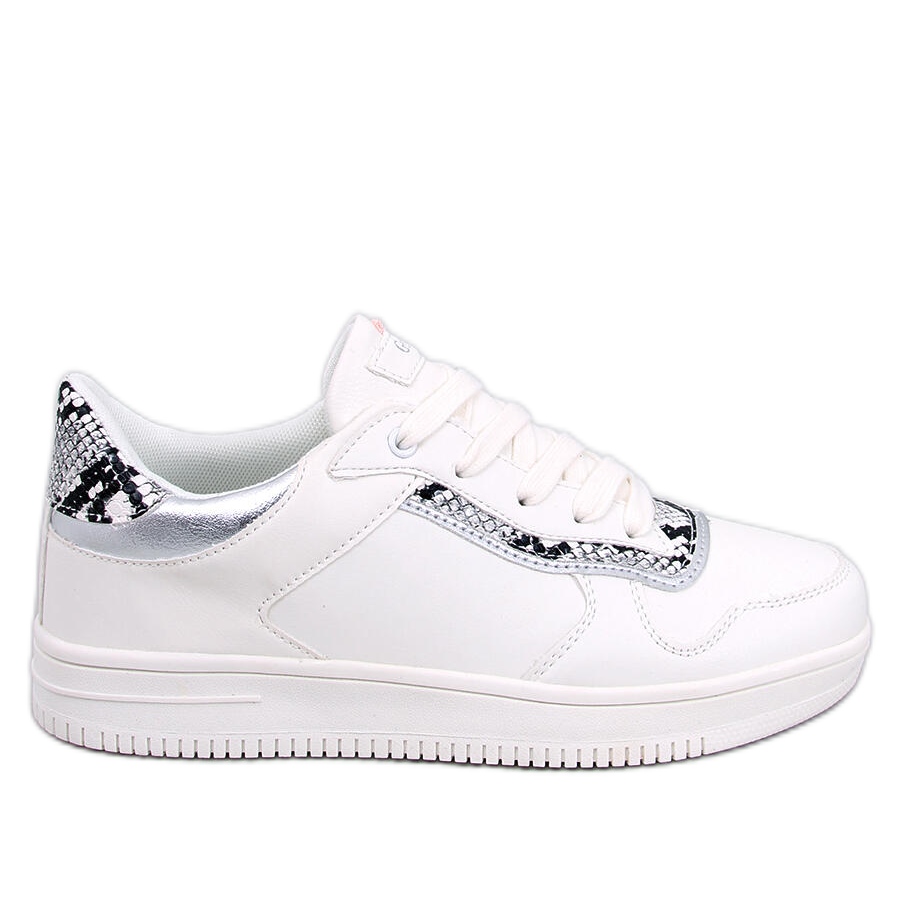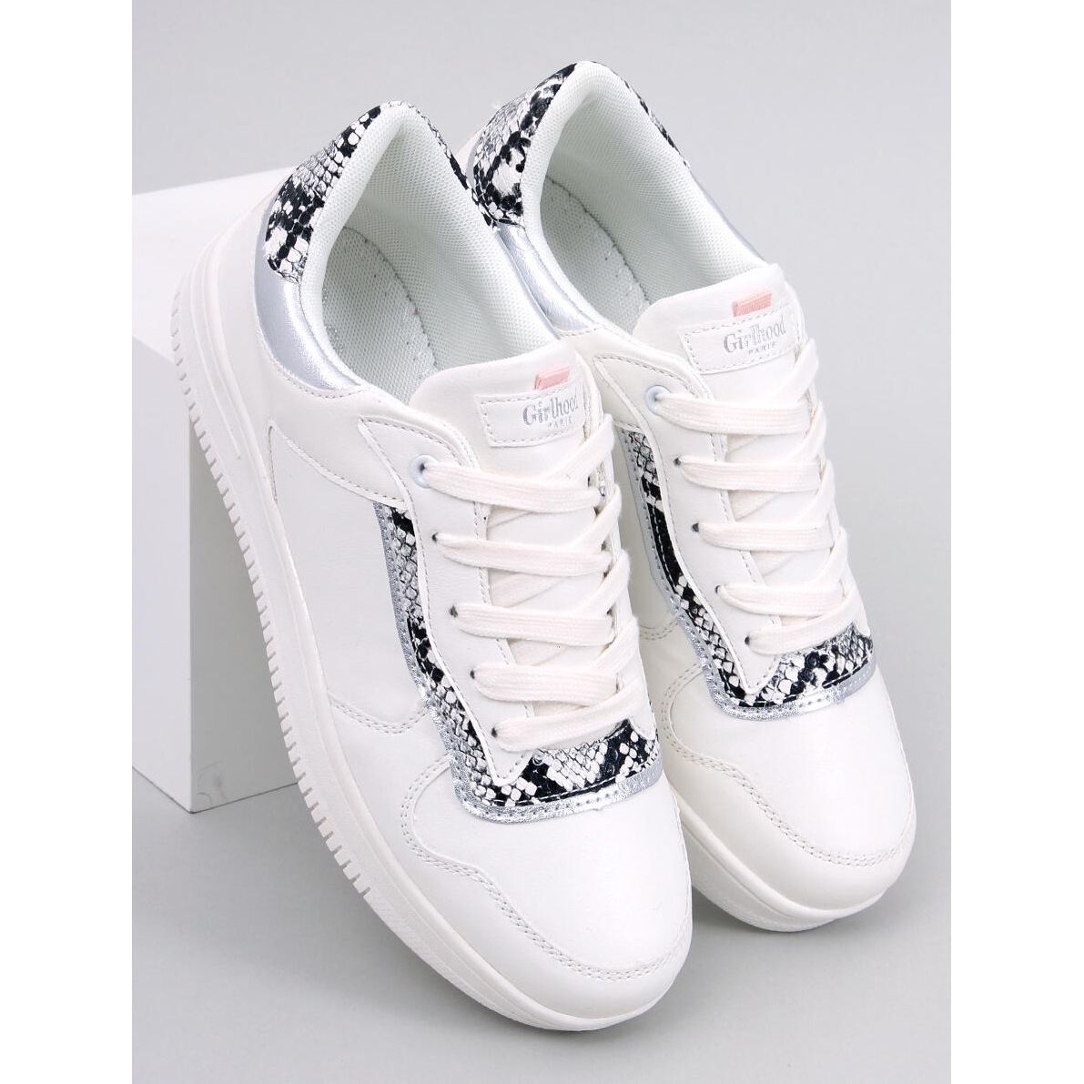 Kvinnors sneakers Lexi White - Classic med Claw. Vita, snörda sportskor är ett måste i varje garderob: universell, bekväm och snygg. Den minimalistiska formen bryts med subtila insatser om en orms hudtema, som lägger till karaktär, utan att störa den eleganta, dagliga estetiken.