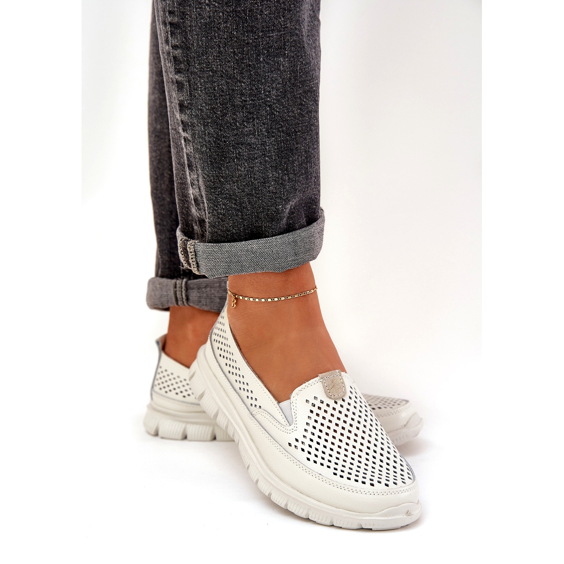 Evento Evento Light Leather OpenWork Loafers 24pb18-6870 White vit