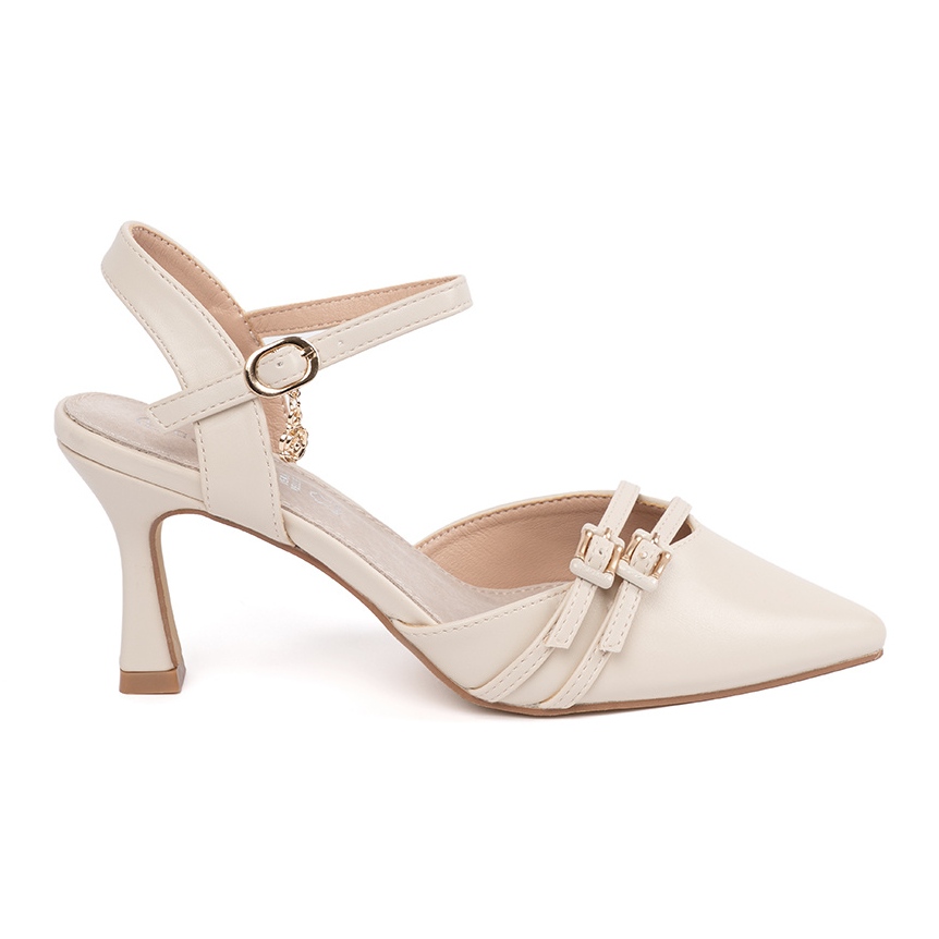 Goodin Goodin Ljus beige pumpar med en öppen häl
