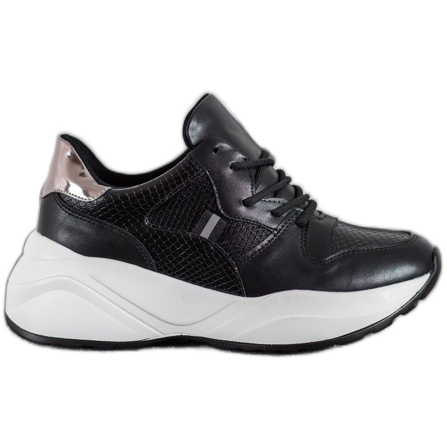 Ljusa, svarta sneakers från märket Weide är ett absolut måste i varje kvinnas garderob! Deras universella design gör dem lätta att kombinera med en mängd olika stilar - från avslappnad till mer elegant. Tillverkade av högkvalitativa material, 50 % konstläder och 50 % textil, garanterar de komfort att bära hela dagen.