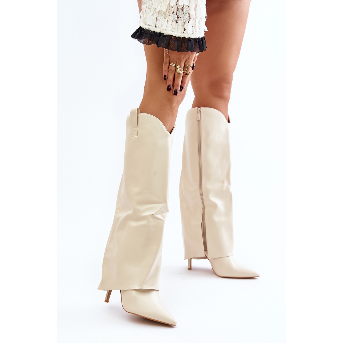 Inna marka Ljusbeige Bellinna högklackade stövlar med nedfällbart skaft