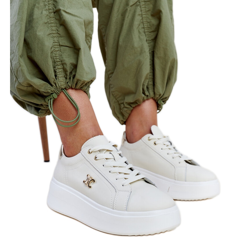 Inna marka Ljusbeige lädersneakers med hög sula, Melita