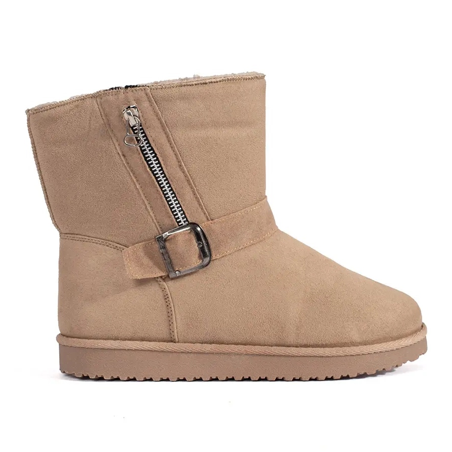 Inna marka Ljusbeige snöstövlar för kvinnor med dekorativt spänne och dragkedja