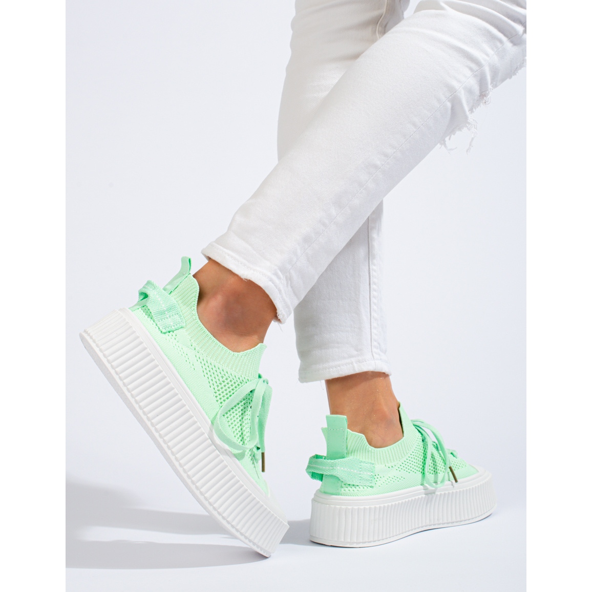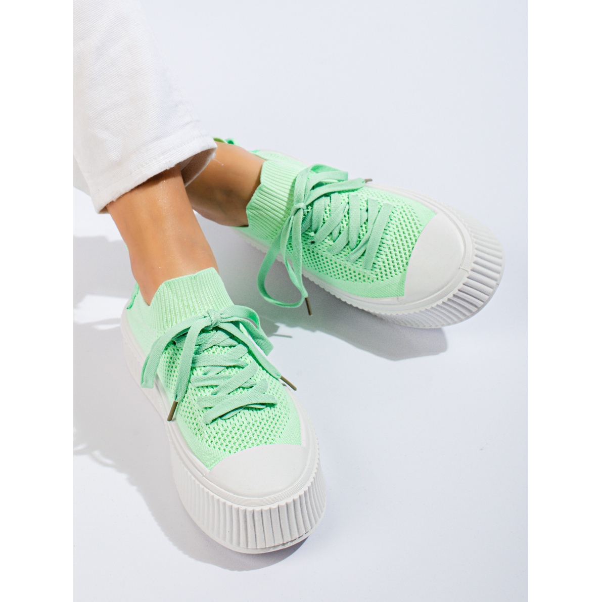 SHELOVET Ljusgröna genombrutna plattformssneakers från Shelovet