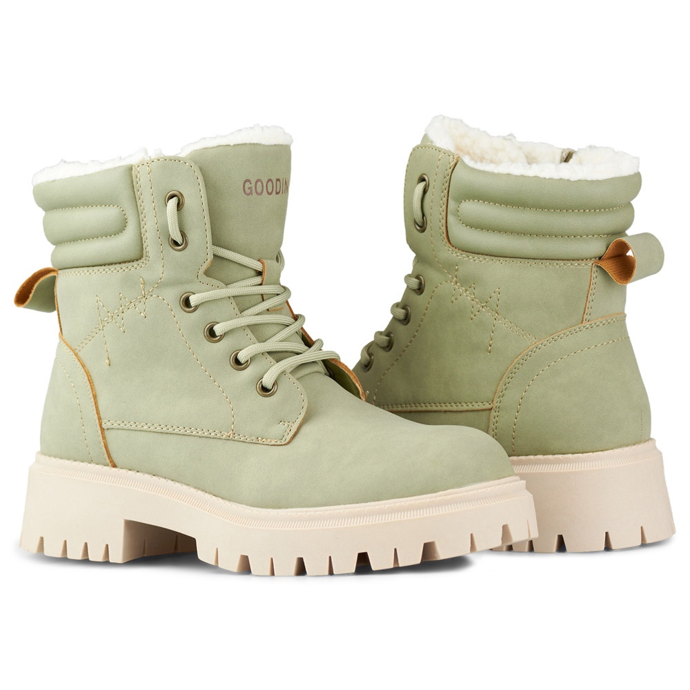 Lite sportig, och samtidigt feminin vandring i en modern, ljusgrön nyans. Perfekt för svalare dagar - de kombinerar bekvämlighet som är typiska för fällor med isolering och en subtil plattform som lägger till några centimeter utan att ge upp komfort.