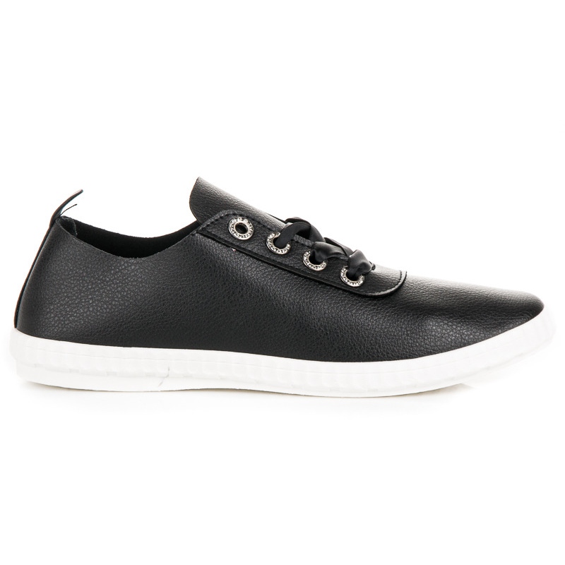 Dessa svarta sneakers passar perfekt in i vår-sommar- och höst-vinterstilar, och är ett idealiskt val för dagligt bruk. Utan mönster, i en universell färg, är de en perfekt bas för många outfits.