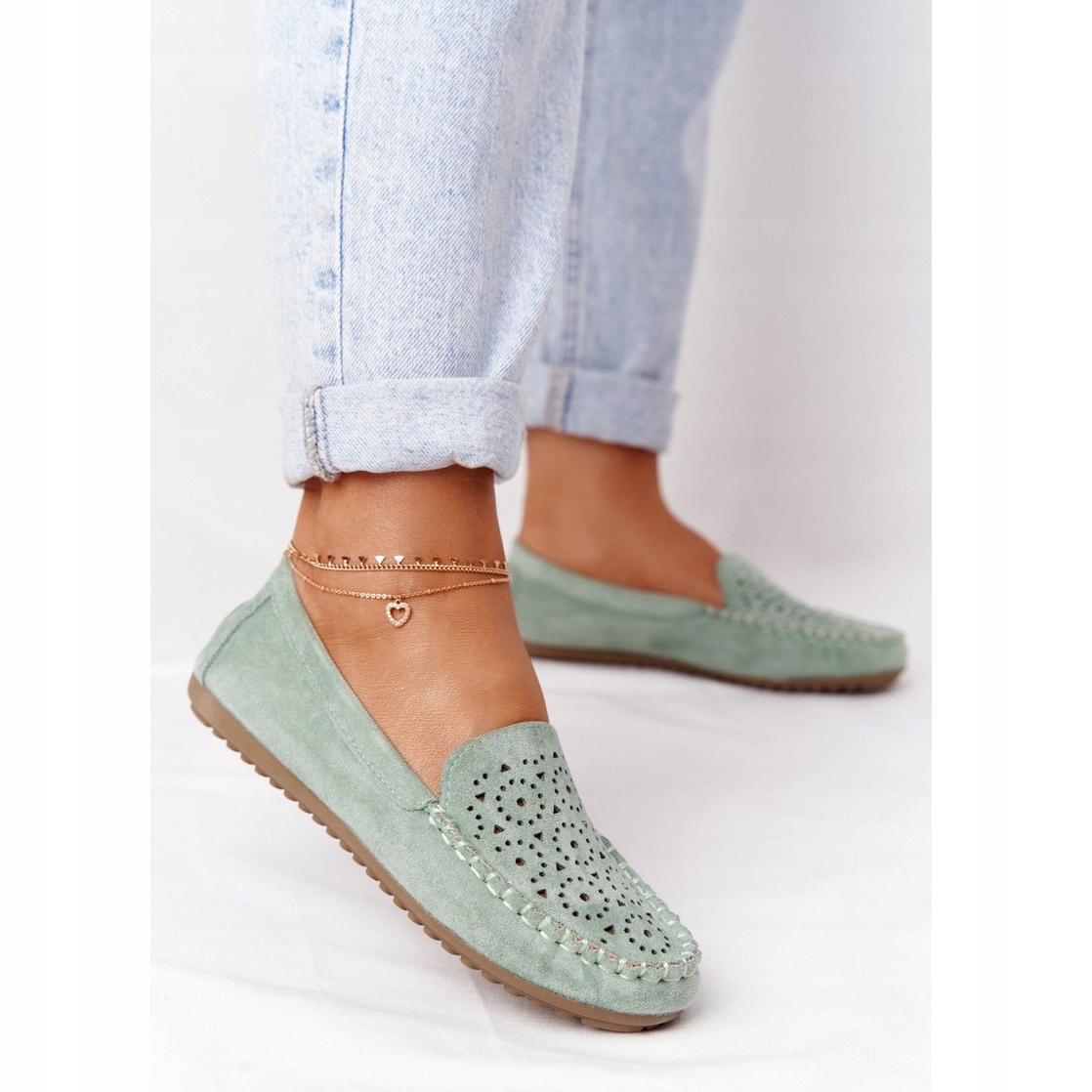 Gröna Molly-mockasiner finns i en vacker grön nyans som perfekt kommer att komplettera alla stylingar. Dessutom gör bristen på isolering dem perfekta för varmare dagar. Snygga genombrutna detaljer ger lätthet och den runda tån framhäver deras eleganta karaktär.