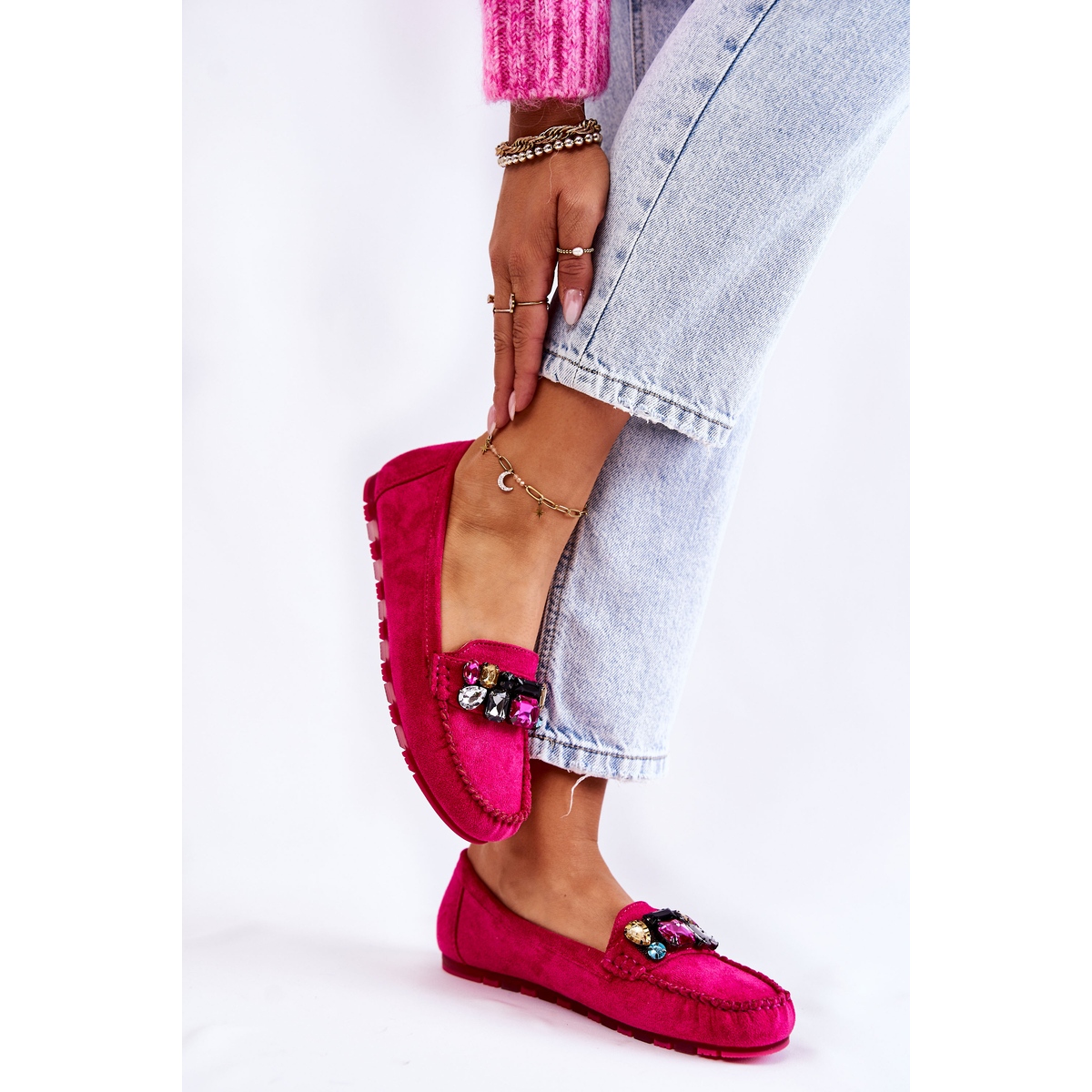 Upptäck elegans och komfort med fuchsia Janetta loafers i mocka för kvinnor från PS1. Dessa skor är gjorda av högkvalitativ eko-mocka och kombinerar klassisk stil med en modern twist. På framsidan av mockasinerna finns dekorativa stenar som ger dem en unik karaktär och glans.