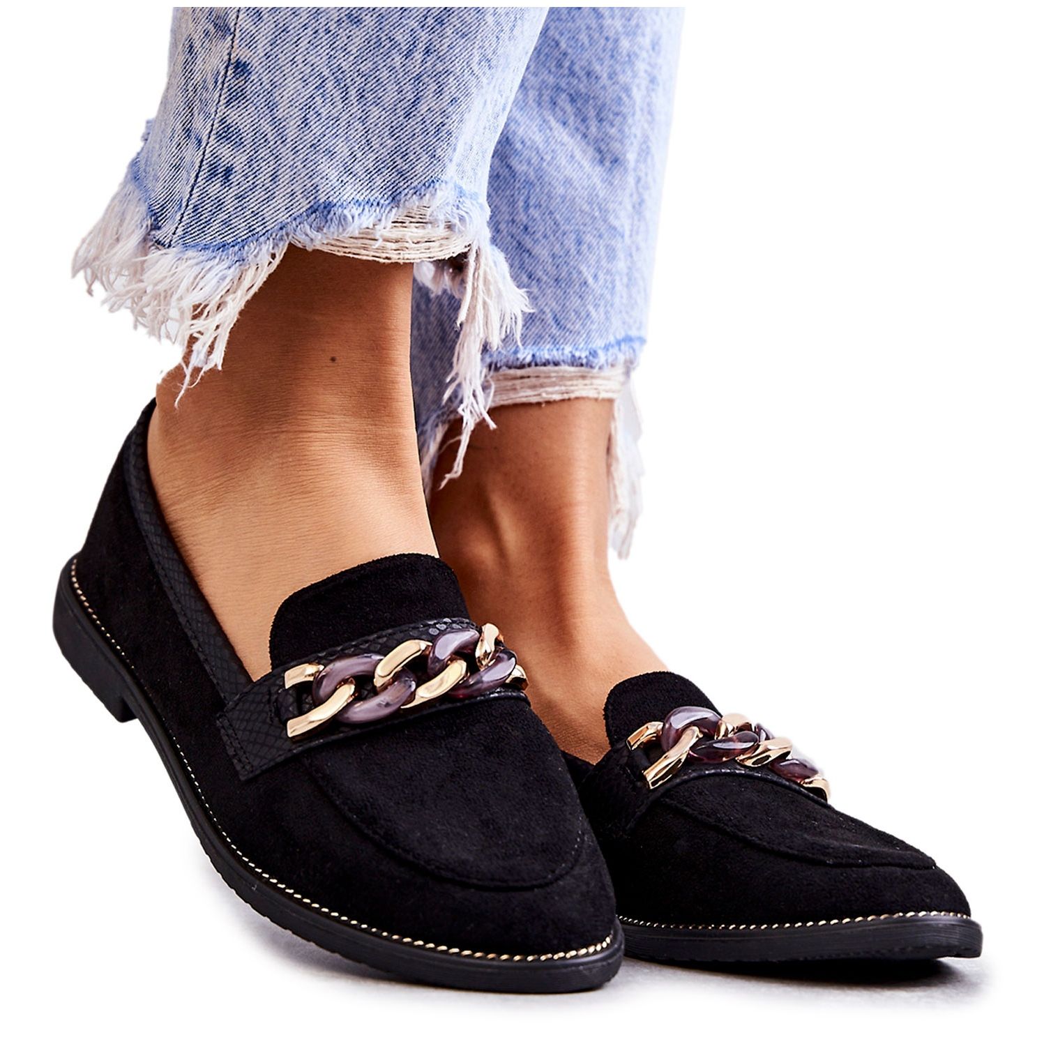 Information: FB2 Loafers i mocka för kvinnor med kedja, svarta naglar