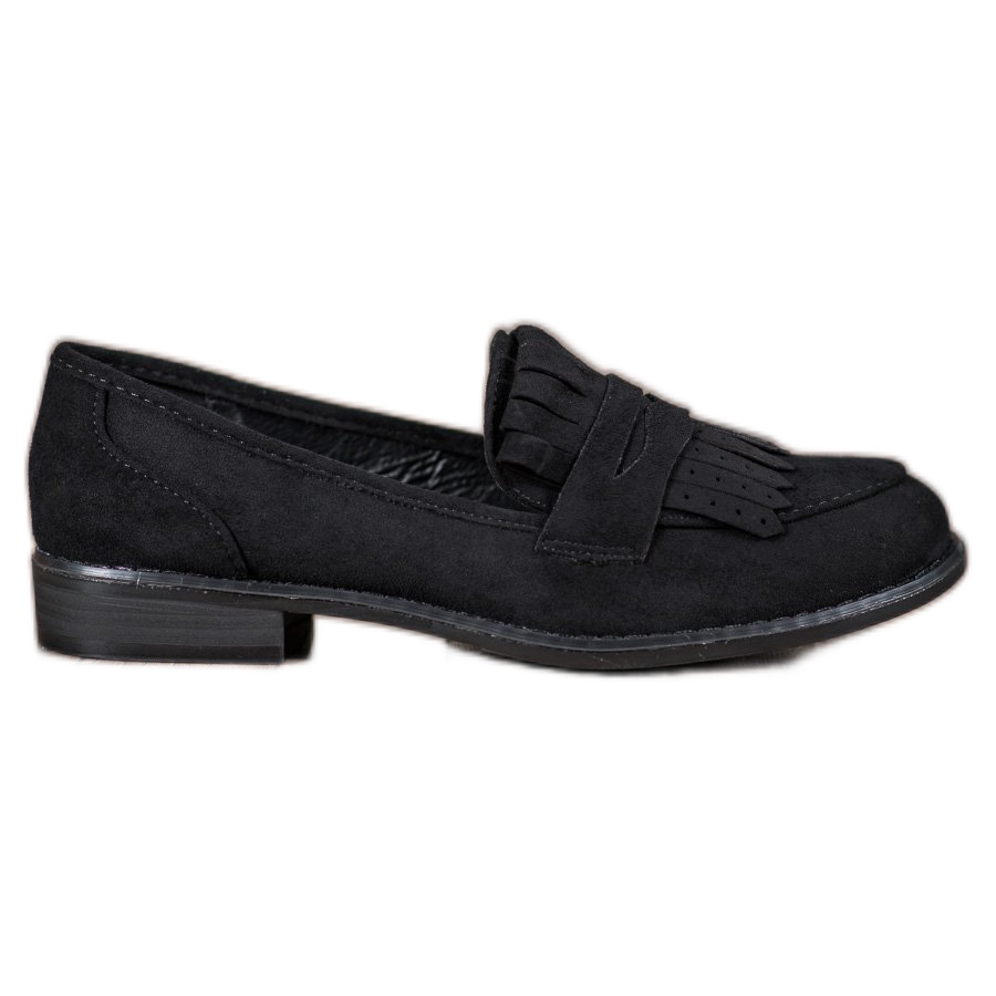Upptäck unik stil och komfort i SHELOVET mockasiner med fransar i djupt svart. Dessa klassiska damskor gjorda av ekologiskt mockaläder kombinerar elegans med en modern accent, tack vare dekorativa fransar i boho-stil. Perfekt för dagligt bruk, de matchar perfekt med en mängd olika stilar, från avslappnad till mer elegant.
