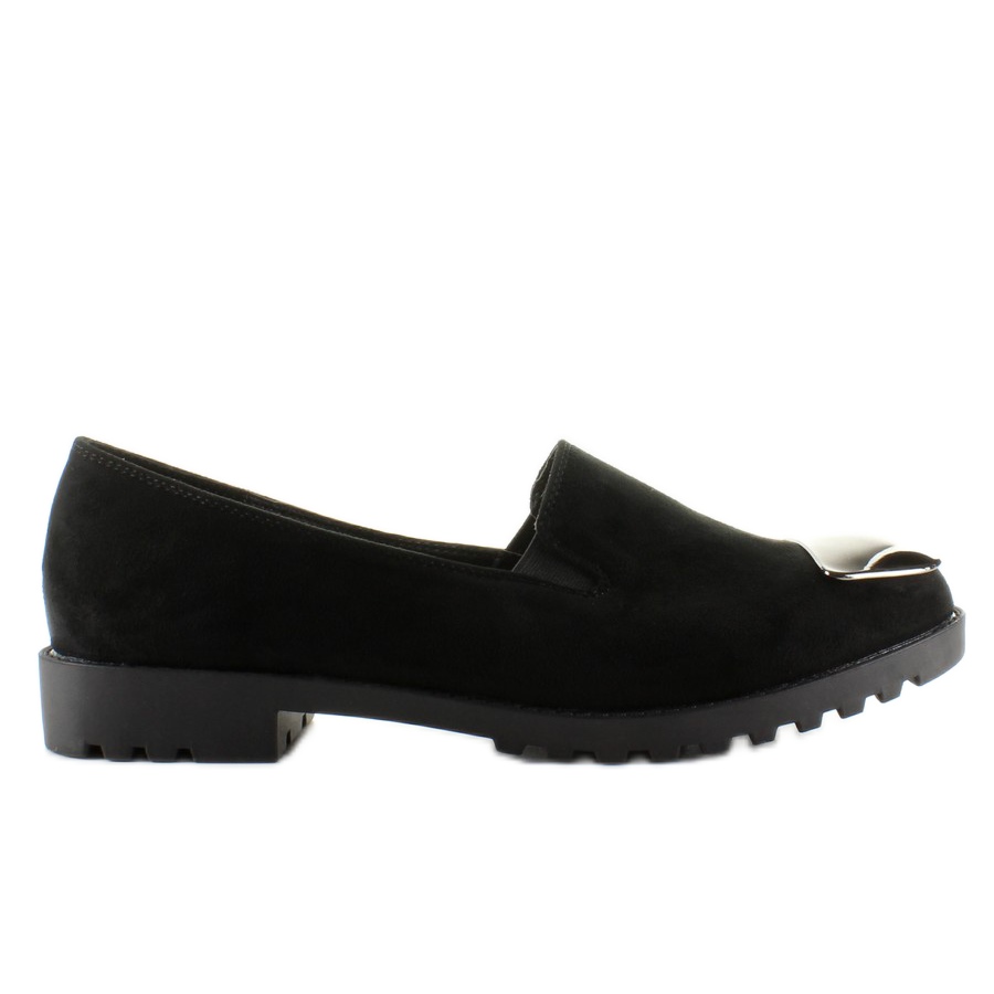 Upptäck elegansen och komforten som erbjuds av loafers med en silverplatta 2030 i svart. Dessa snygga dammockasiner är gjorda av tjock eko-mocka, vilket gör dem inte bara estetiska utan också hållbara. En rejäl sula med ett skydd ger utmärkt grepp, vilket gör dem till ett idealiskt val för höstdagar.