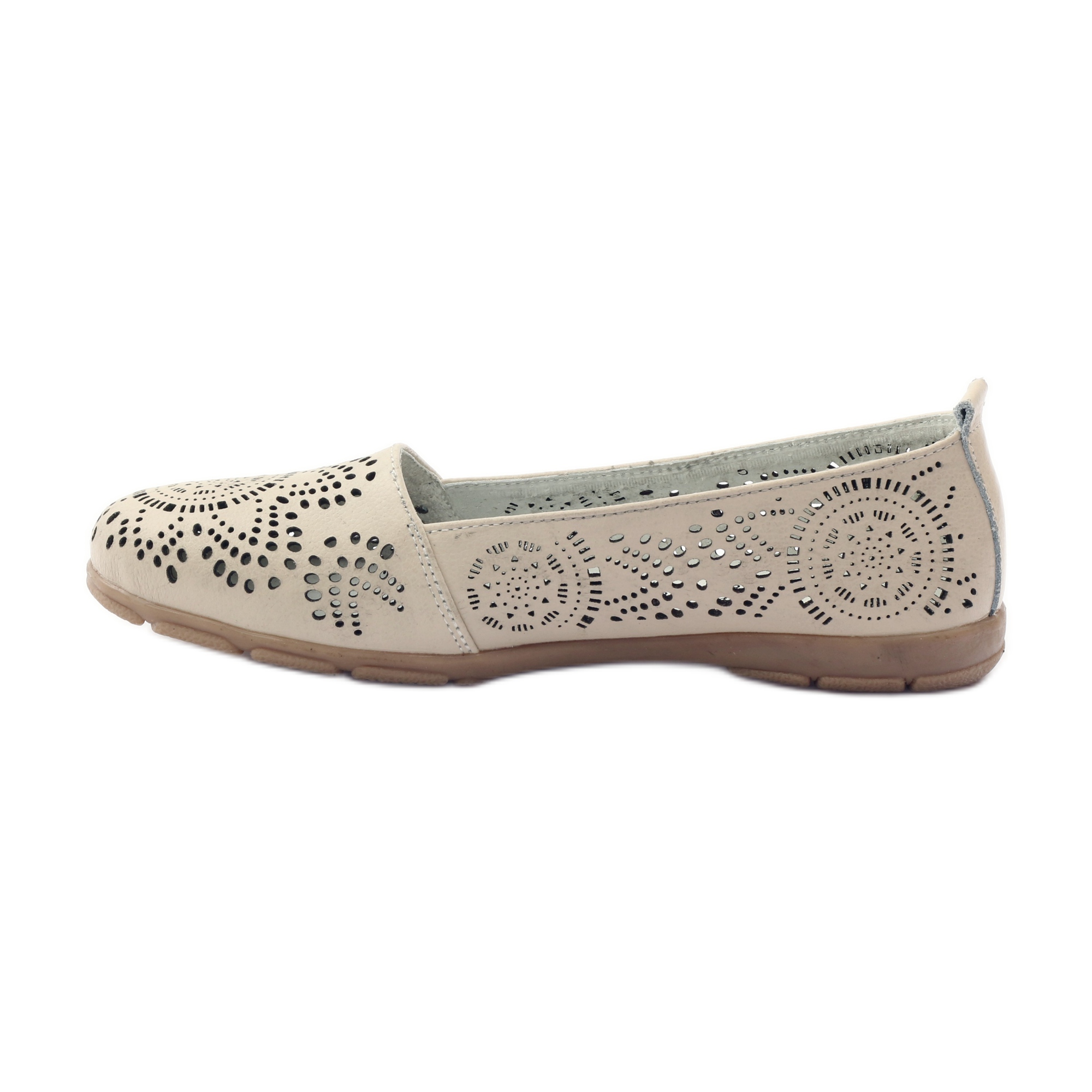 Vi presenterar genombrutna ballerinor F 080 från märket Filippo i en elegant beige färg, perfekt för vår- och sommardagar. Denna modell kombinerar subtil design och maximal bärkomfort. Ballerinaskorna är gjorda av högkvalitativt naturligt läder och kännetecknas av ett genombrutet mönster som säkerställer tillräcklig ventilation av fötterna.