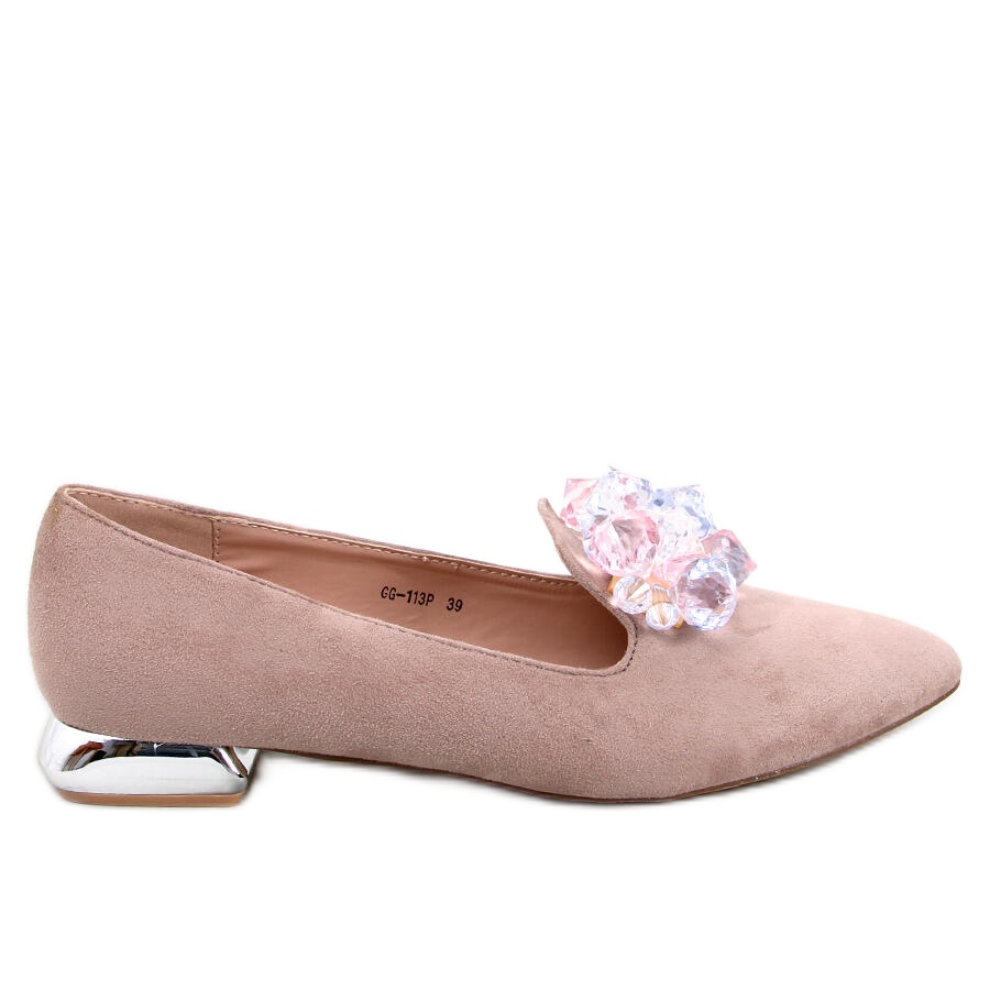 En ytterligare fördel med mockasinerna är en låg 2-centimeters klack dekorerad med metallisk finish, vilket garanterar komfort även efter många timmars användning. Det är komfort med bra stil. Yttermaterialet är ekologisk mocka, vilket understryker den höga kvaliteten på utförande och uppmärksamhet på detaljer.