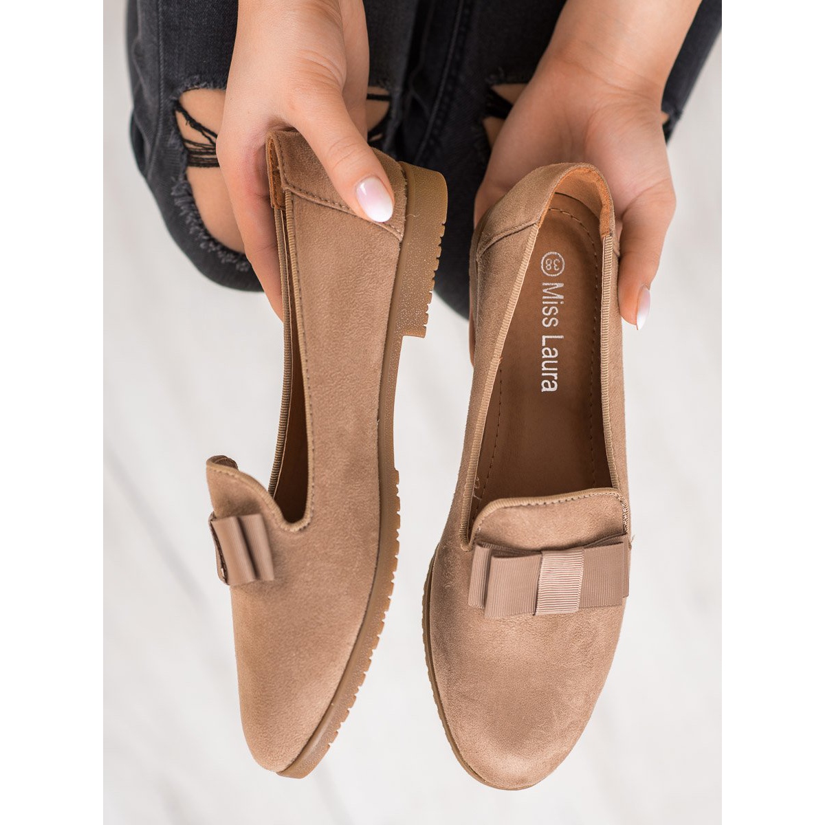 Miss Laura lords med en brun rosett är ett idealiskt val för kvinnor som letar efter en kombination av praktisk och elegans. Deras ljusbruna färg matchar subtilt vilken hy som helst, vilket ger ljushet och charm. Dessa skor är gjorda av högkvalitativt ekologiskt mockaskinn och ger inte bara ett estetiskt utseende utan också komfort att bära.