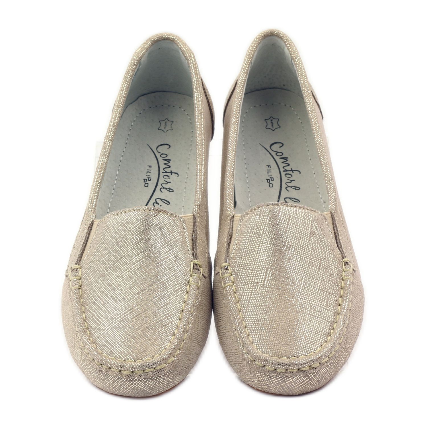 Upptäck skönhet och elegans med Filippo Lordsy F 007 dammockasiner i en nyans av guld. Dessa originalskor är det perfekta valet för vår- och sommardagar när du vill komplettera din styling med en sofistikerad accent. Tillverkade av högkvalitativt naturligt läder, dessa skor ser inte bara extremt imponerande ut, utan garanterar också komfort att bära.