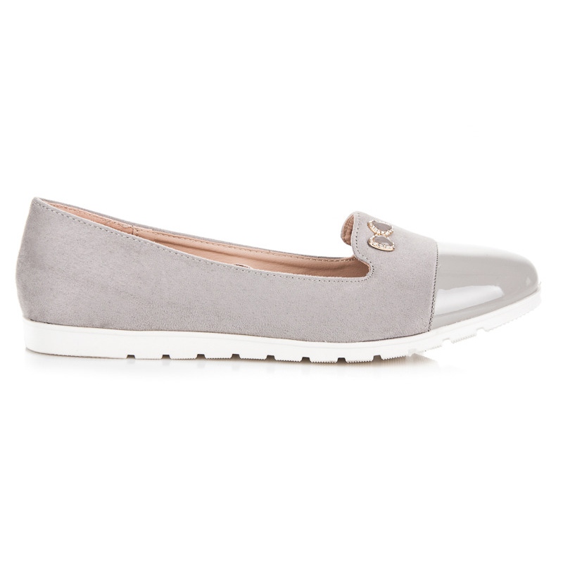 Vinceza lords med patenterad tå i en elegant grå nyans är ett perfekt val för kvinnor som värdesätter komfort och stil. Deras minimalistiska design gör dem helt i linje med rådande trender, och samtidigt är de så universella att de kan bäras vid många tillfällen – både till vardags och mer formell styling.