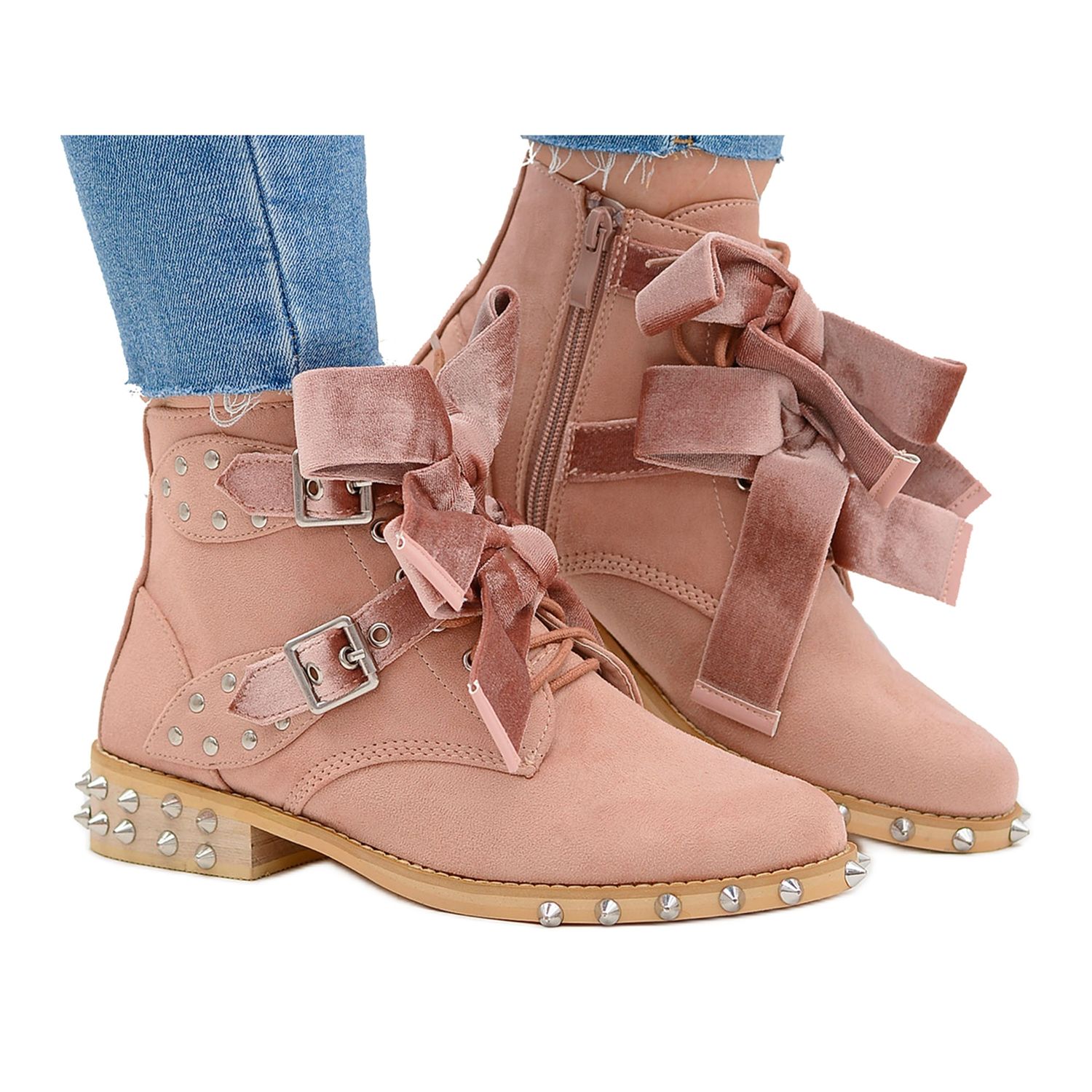 LU BOO Lu Boo Pulverstövlar Camila med Studs Spikes Bows rosa