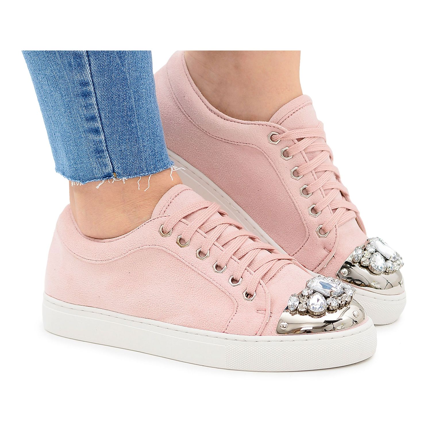 Sneakersna är omsorgsfullt gjorda av eko-mocka, vilket säkerställer hållbarhet och ett behagligt material. Dessutom garanterar den ekologiska läderinnersulan utmärkt dämpning, vilket gör varje steg till ett rent nöje. Du kan inte ignorera de glänsande kristallerna som ger dem en unik charm och gör dem perfekta att bära vid speciella tillfällen såväl som varje dag.