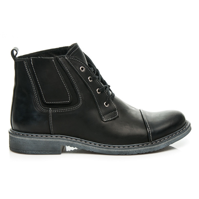 Elegant, slitstark och bekväm - Lucca vandringsskor i läder i klassisk svart är ett förslag för anhängare av avslappnad stil som behöver pålitliga skor för höst och vinter. Modellen är gjord av naturligt läder, isolerad på insidan, vilket säkerställer termisk komfort under kallare dagar. Den höga ovandelen och snörning garanterar en stabil passform, och den syntetiska sulan ger bra grepp på urbana och lätta terrängytor.