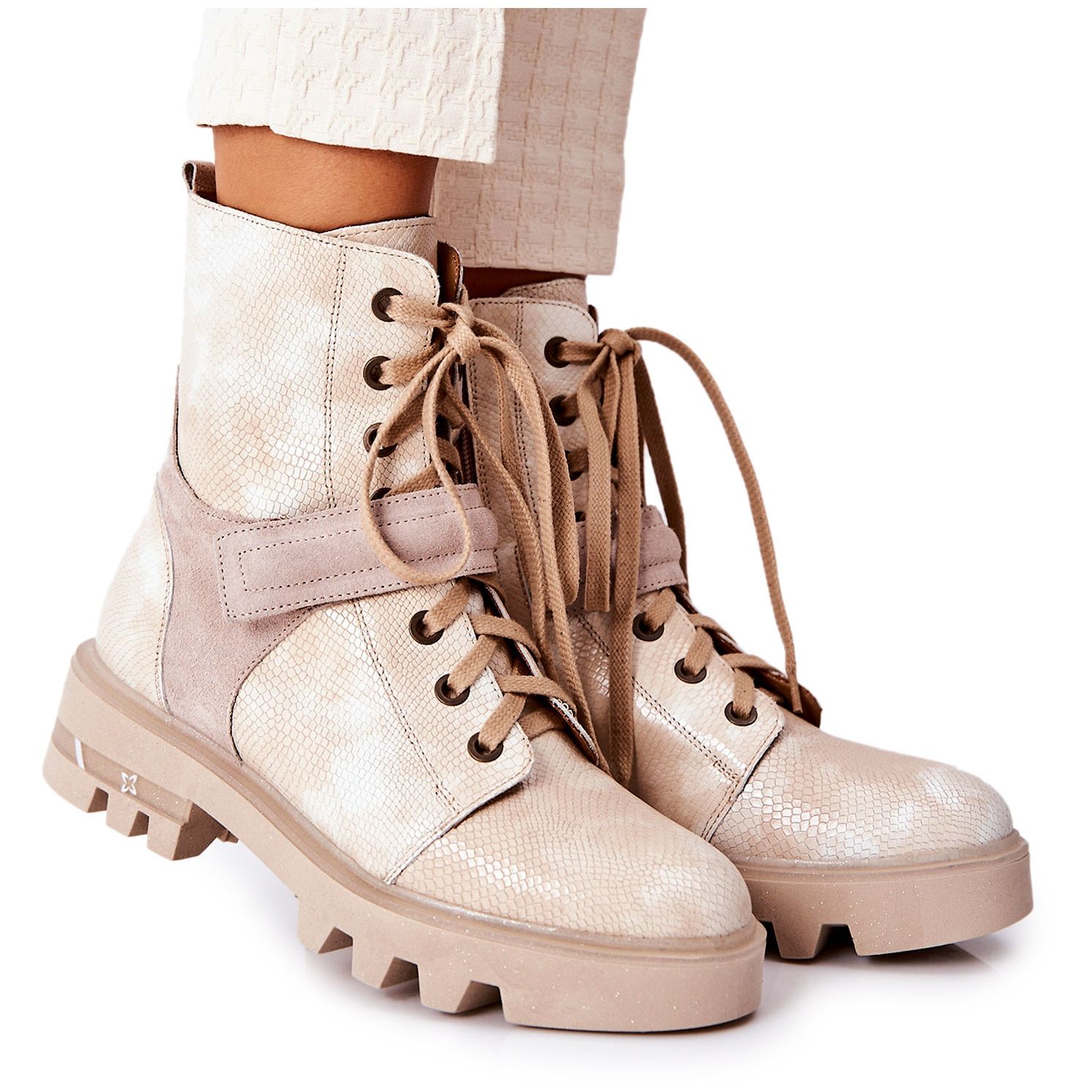 Maciejka Maciejka Beige läderarbetarstövlar 05219-04