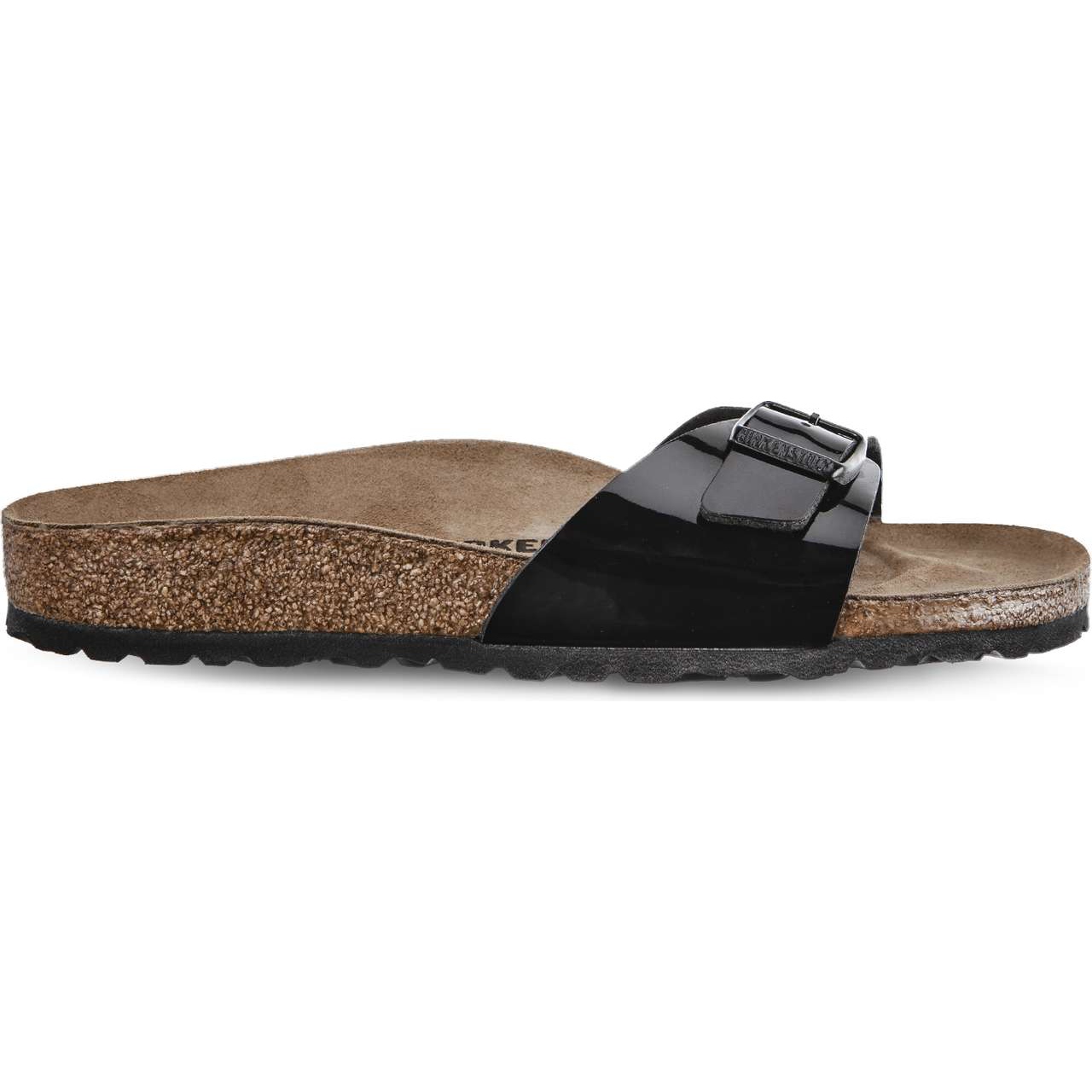 Klassisk och bekvämlighet i en. Madrid 303 är en minimalistisk, lackerad Birkenstock -flip flops som kombinerar en elegant, svart look med en ikonisk, anatomcilly profilerad insats. Perfekt för sommaren - barfota slitna barfota orsakar inte skador eller brännskador, och hållbara material garanterar en lång tid att användas.
