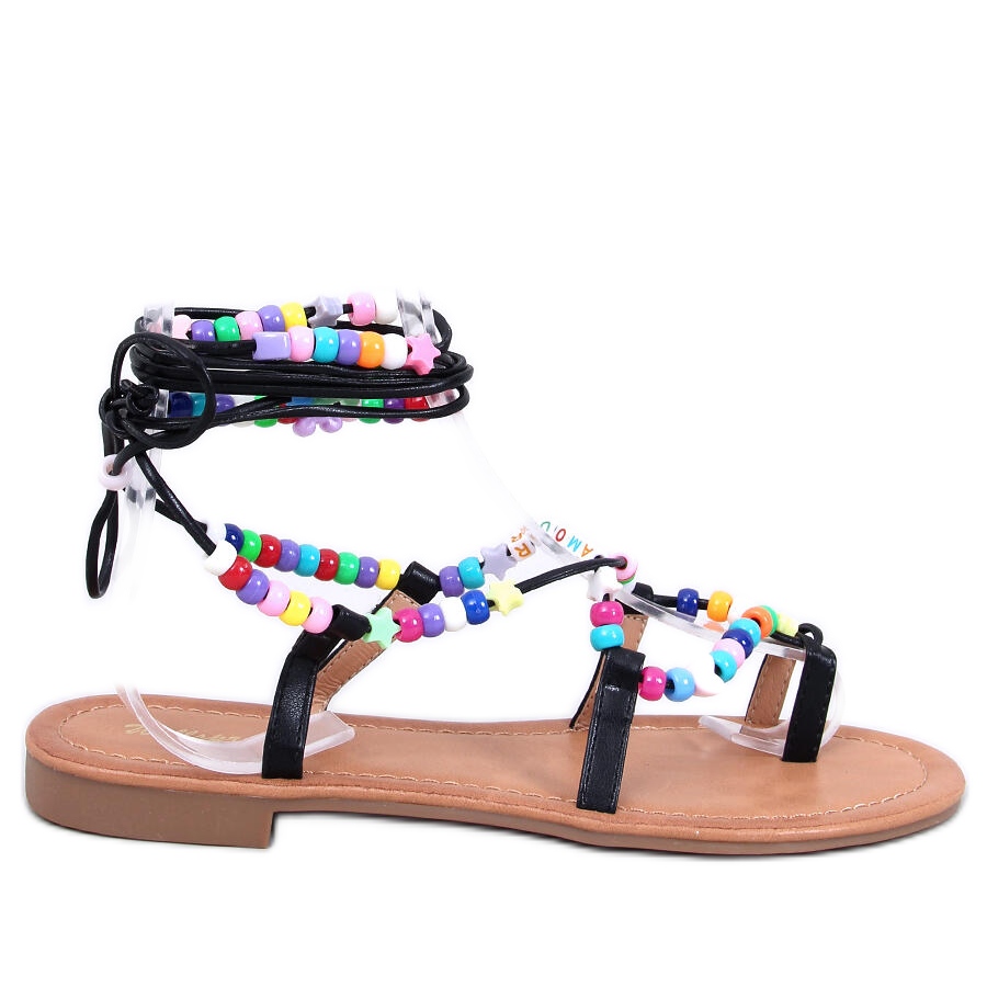 Detaljer: Maios svarta romerska sandaler med pärlor