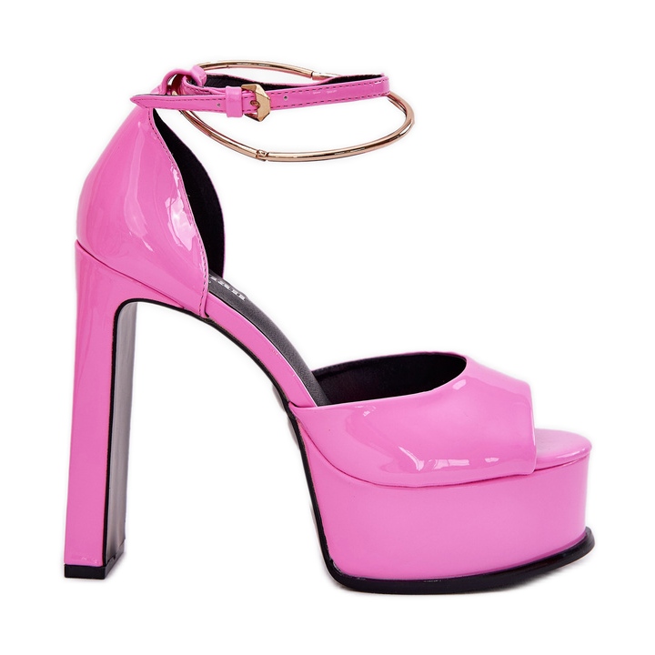 Upptäck den stil och elegans som våra lackerade kvinnors sandaler erbjuder på posten och plattformen i en vacker rosa nyans. Dessa sandaler är skapade med ekoläder och kombinerar modern design med komforten att bära. En hög häl 14 cm hög och en 4,5 cm -plattform gör att de inte bara tillväxt, utan också den unika karaktären för varje stilisering.