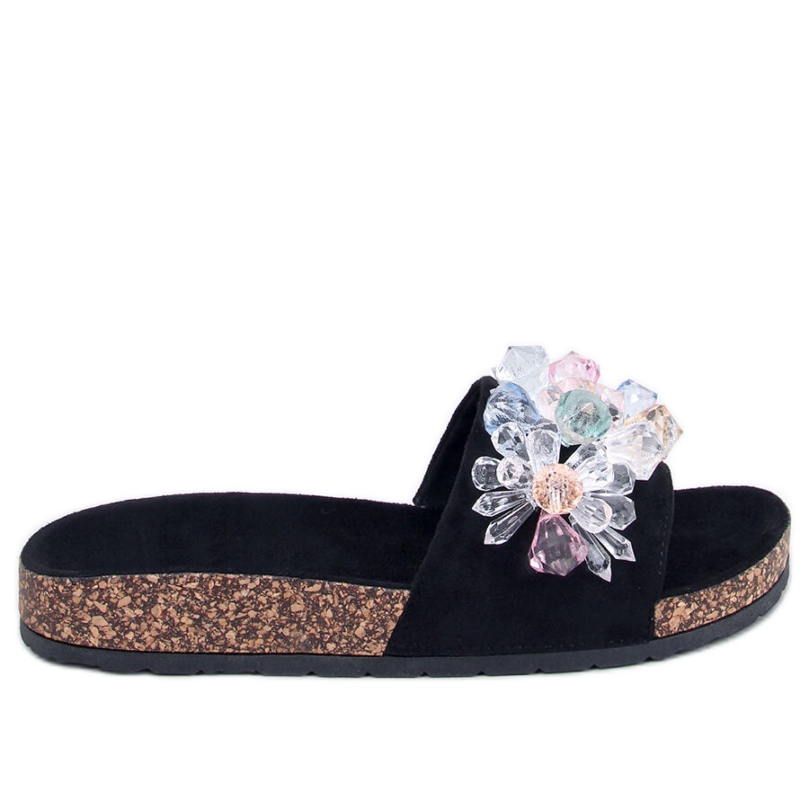 Upptäck våra eleganta korktofflor med Maliv Black-stenar som kombinerar komfort och stil. Dessa svarta flip-flops för kvinnor, placerade på en bekväm korksula, är det perfekta valet för dagligt bruk. Mockaremmen, dekorerad med glänsande, flerfärgade kristaller, ger dem en unik stil, vilket gör dem till ett perfekt komplement till din garderob.