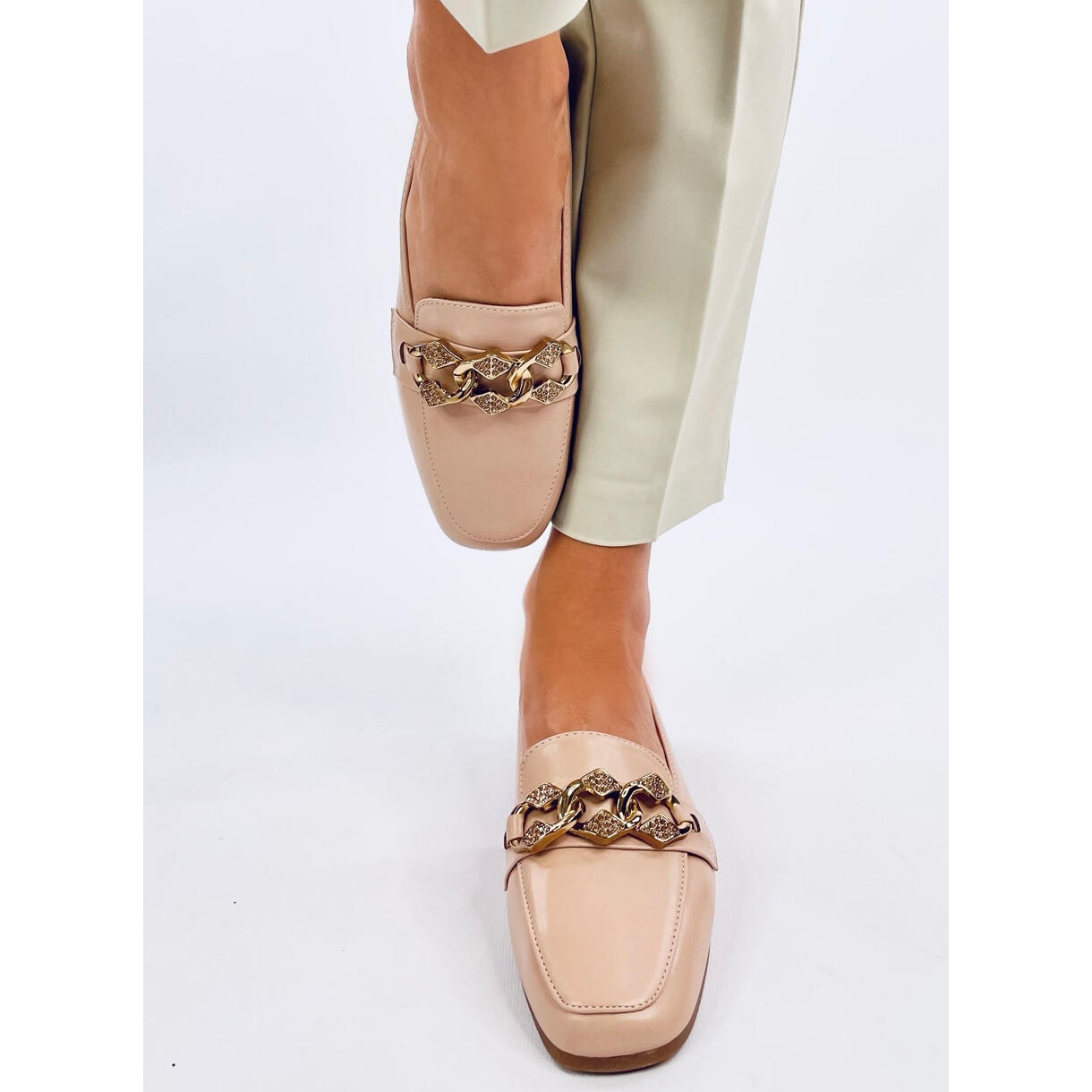 Mallow Khaki beige är en modell med en rund tå, vilket ger dem en klassisk look. Tack vare glidstängningen är det extremt enkelt att sätta på och ta av dem. Dessutom framhäver den eleganta metallkedjan deras unika karaktär och gör att de passar perfekt in i de senaste trenderna.