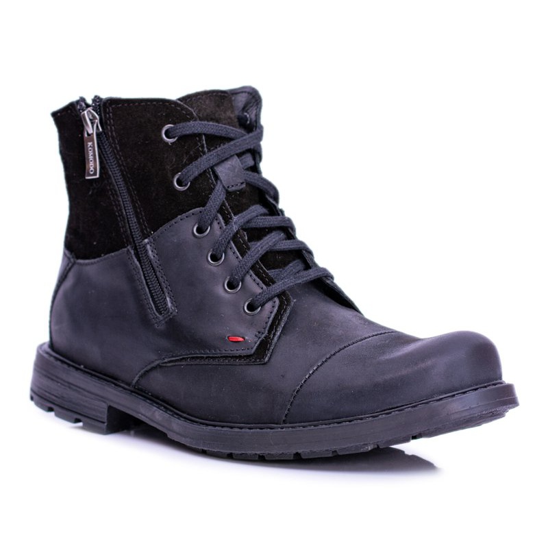 Detaljer: Mäns varma läderstövlar med blixtlås Svart KOMODO 871