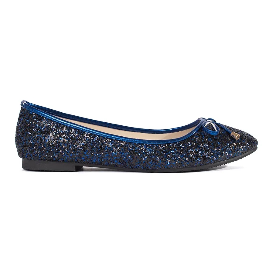 Inna marka Marinblå glänsande balettlägenheter med rosett