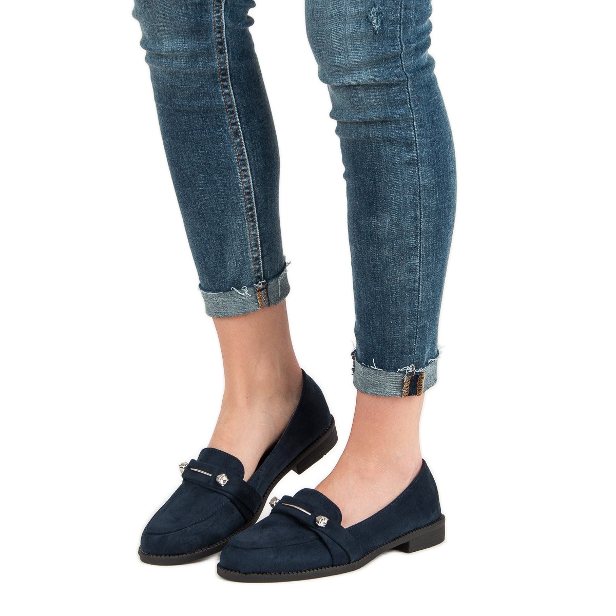 Marinblå Nio Nio mockasiner är ett idealiskt val för kvinnor som värdesätter både komfort och elegans. Dessa klassiska skor är gjorda av ekologisk mocka och är perfekta för olika situationer och lägger till elegans och karaktär till varje styling.