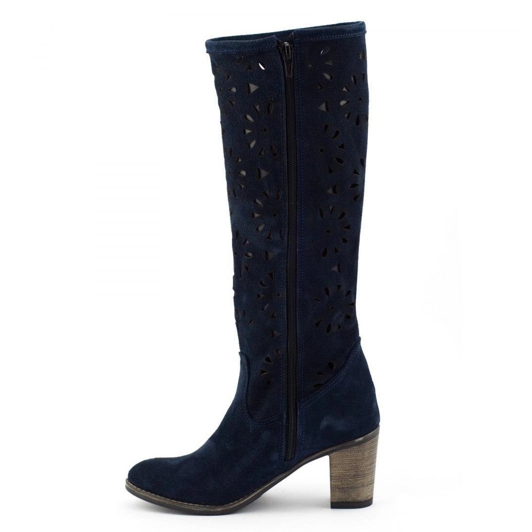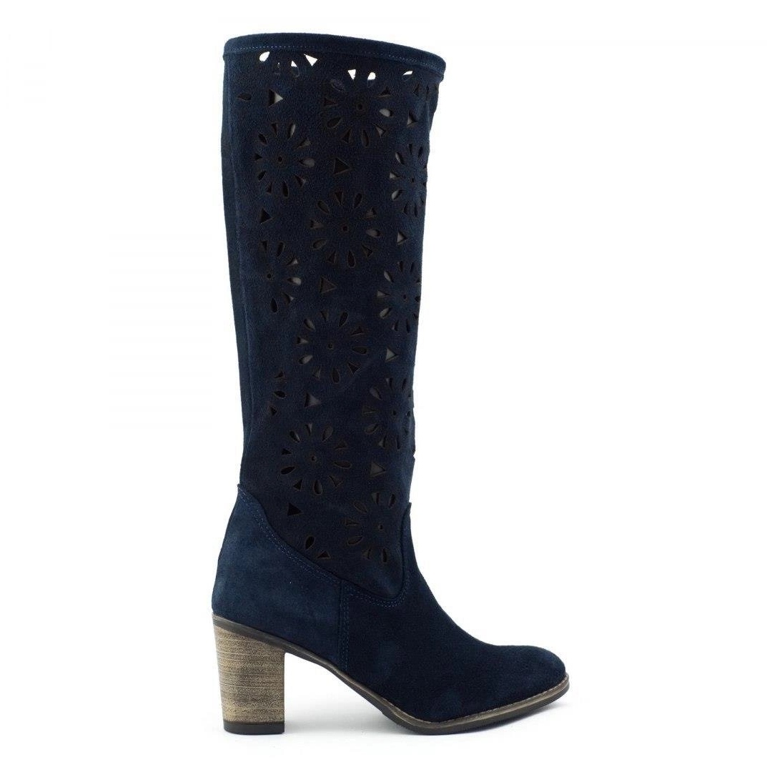 Olivier - Openwork Knee Boots, Navy Nubuk