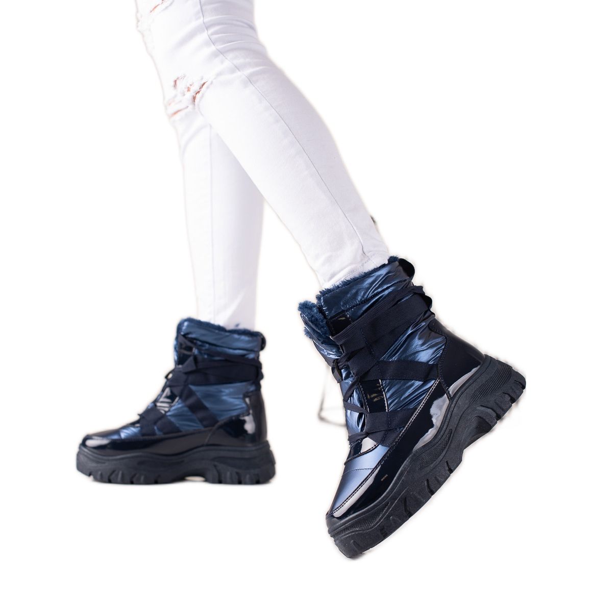Lär känna de marinblå glänsande snökängorna från den välkända tillverkaren TRENDI, som är en perfekt kombination av komfort och stil. Tack vare sin avslappnade design är dessa eleganta damskor perfekta för dagligt bruk, och ger inte bara ett moderiktigt utseende, utan också komfort under vinterpromenader.
