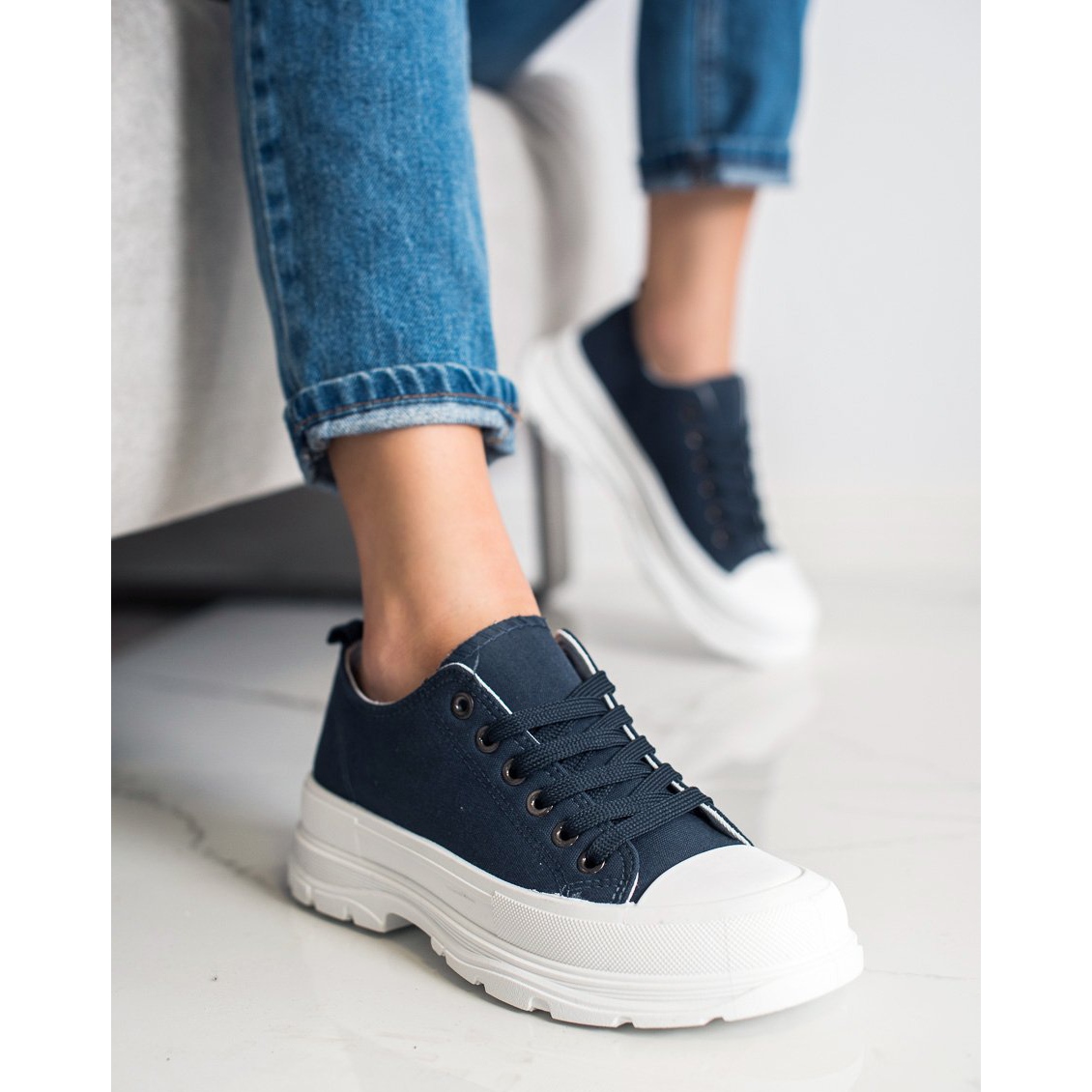 Detaljer: SHELOVET Marinblå sneakers på plattformen
